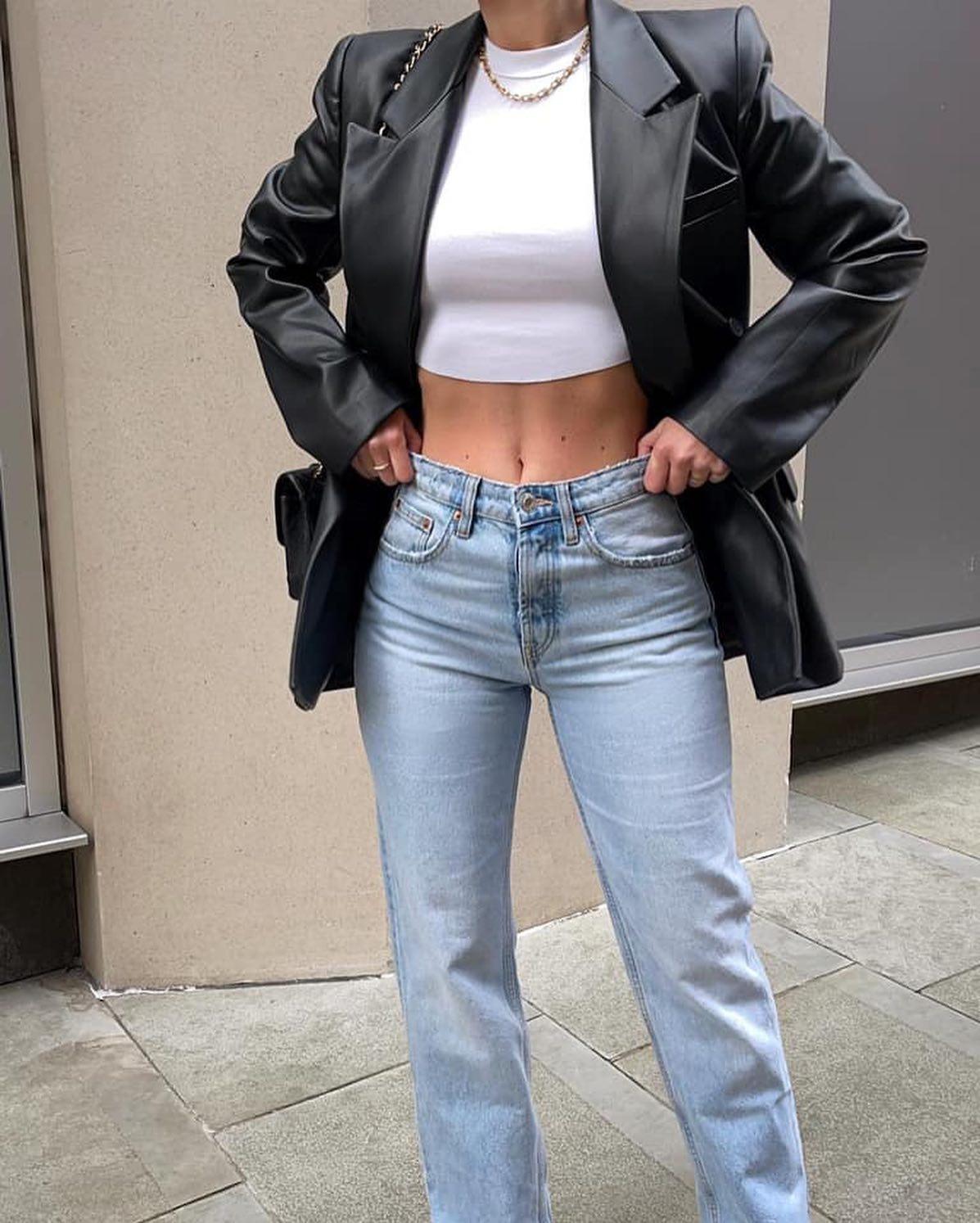 극락 비율인 해린의 크롭룩🖤🤍 블랙 크롭티에 화이트 디스트로이드 진으로 시크 스타일링✨