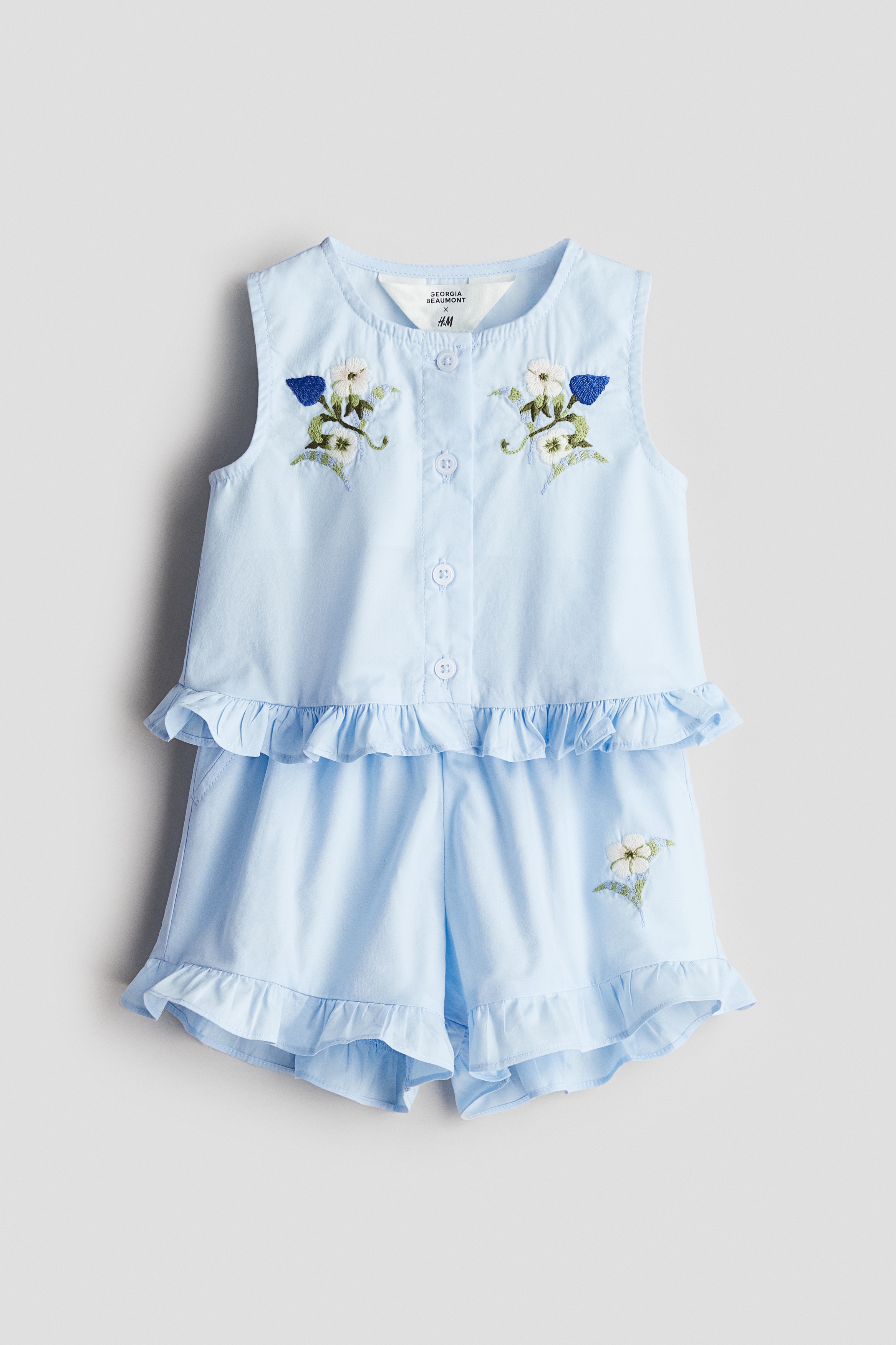 H & M - 엠브로이더리 디테일 포플린 2피스 세트 - 블루