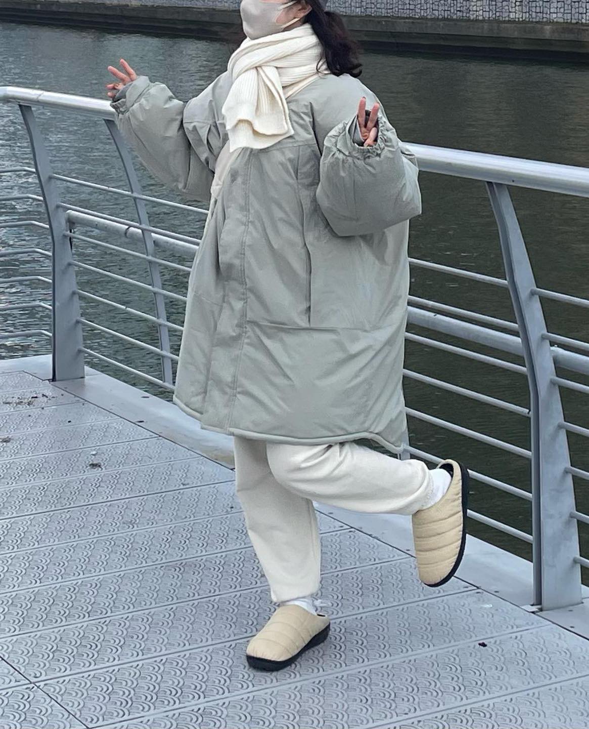 최근 블랙핑크 제니가 런던 여행 중 르메르 범백과 함께 스타일링한 신발로 화제가 되었는데요. 레드벨벳 슬기는 겨울 데일리 슈즈로 스부 패딩 슬리퍼를 선택하여 원마일웨어부터 여행 코디까지 다양한 겨울 스타일링을 보여주었습니다.