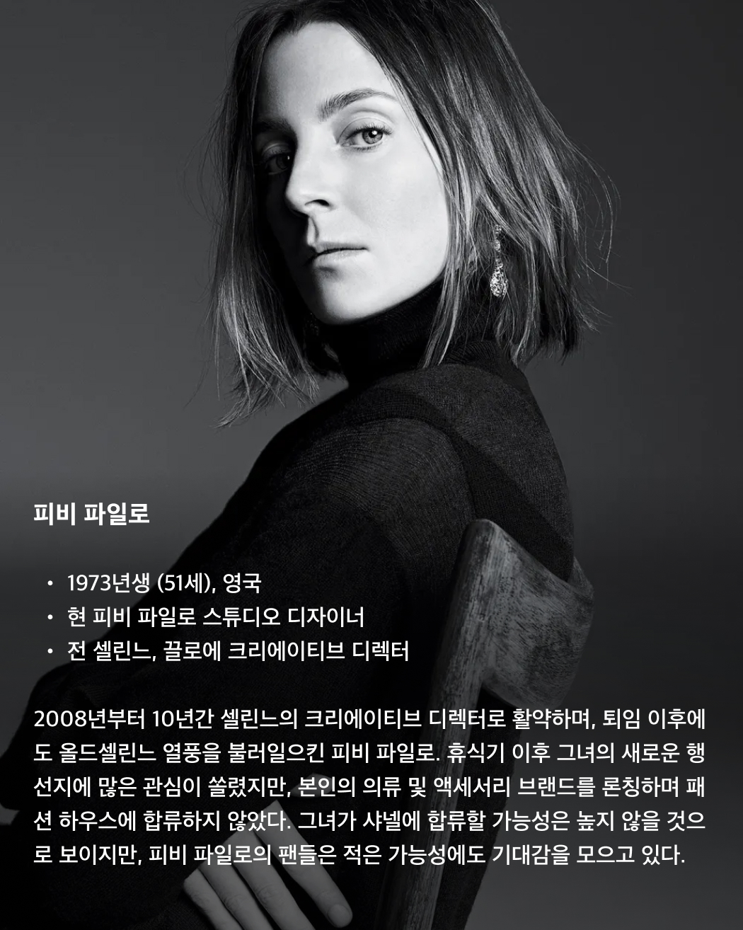 칼 라거펠트가 사망한 이후 5년간 샤넬을 이끌어온 버지니 비아르가 크리에이티브 디렉터 자리에서 사임했습니다. 칼 라거펠트의 오른팔이자 왼팔로 30년 이상 그와 함께 일했던 버지니 비아르가 샤넬을 떠나자, 누가 그 후임자가 될지 이목이 쏠리고 있는데요. 여러 패션하우스에서 크리에이티브 디렉터로 활동했으나 현재는 행선지가 정해지지 않은 여러 디자이너, 샤넬과 어울리는 디자인 스타일을 가진 디자이너 등 여러 후보자가 그 후임으로 거론되고 있죠. 과연 샤넬의 미래를 이끌게 될 디자이너는 누가 될까요? 슬라이드로 확인해 보세요!✅ 이미지8