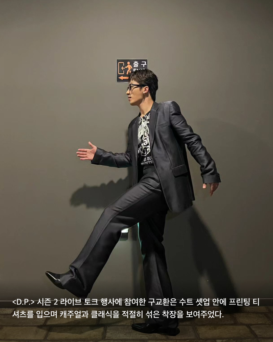 <D.P.> 시즌 2 라이브 토크 행사에 참여한 구교환은 수트 셋업 안에 프린팅 티셔츠를 입으며 캐주얼과 클래식을 적절히 섞은 착장을 보여주었다.