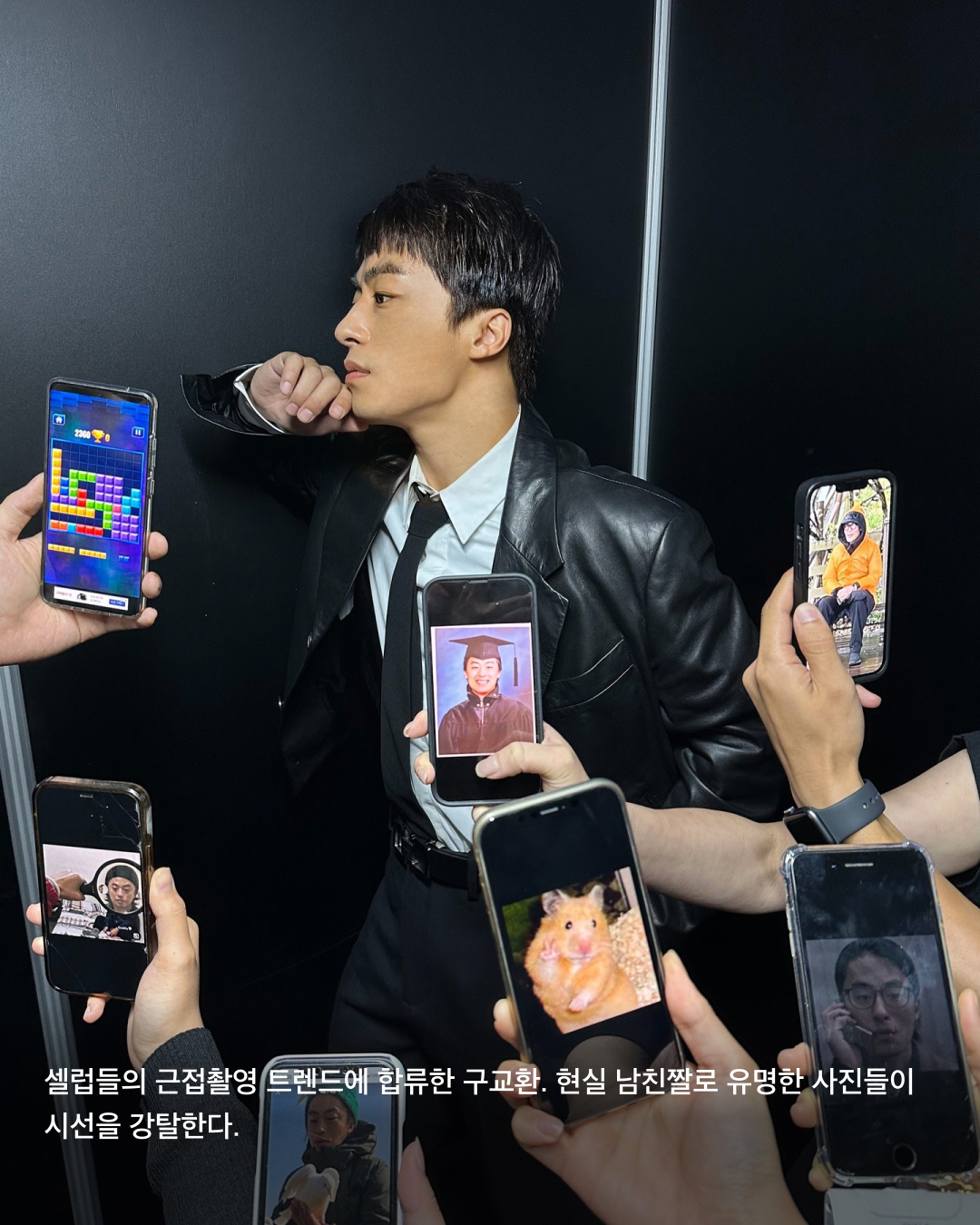셀럽들의 근접촬영 트렌드에 합류한 구교환. 현실 남친짤로 유명한 사진들이 시선을 강탈한다.