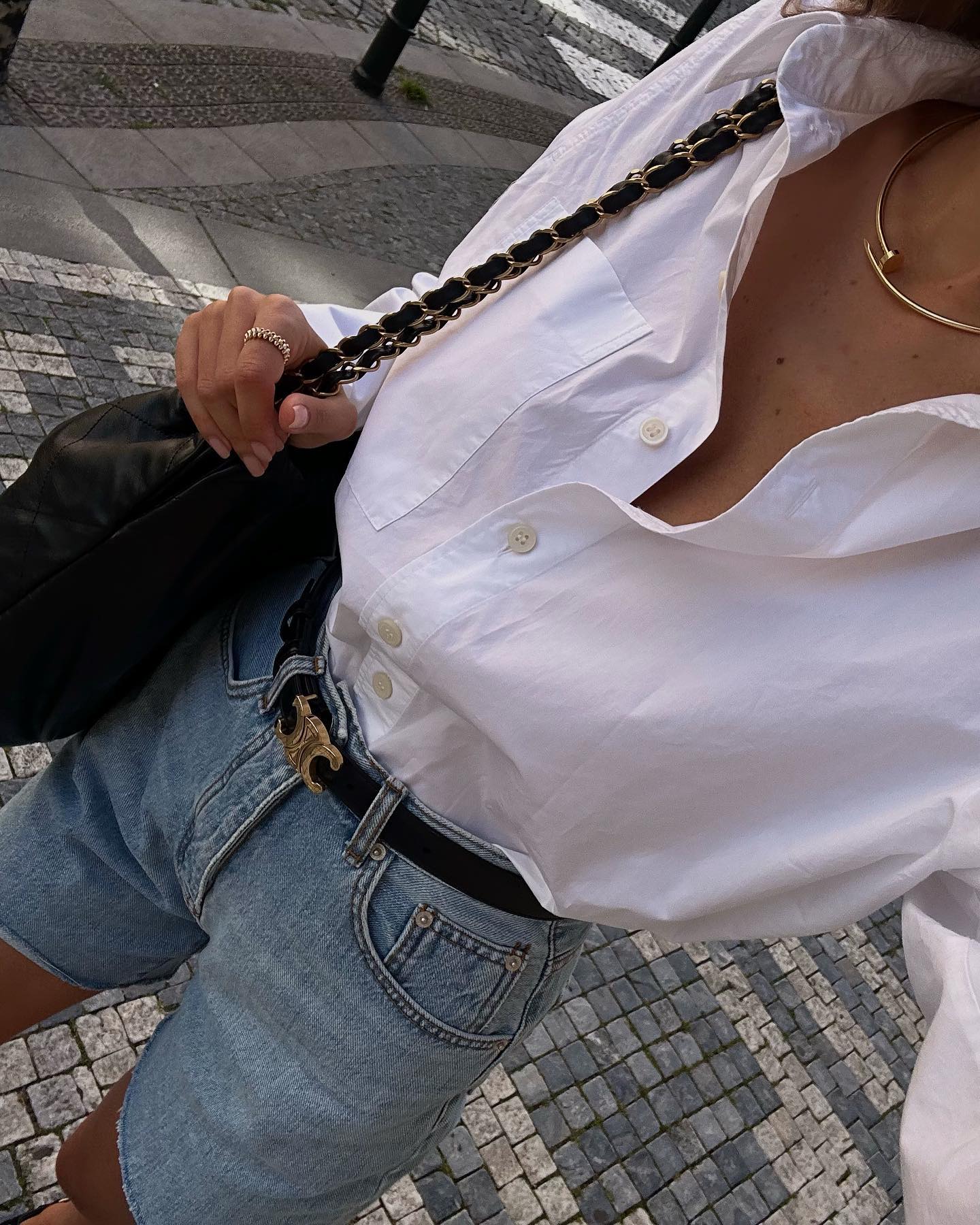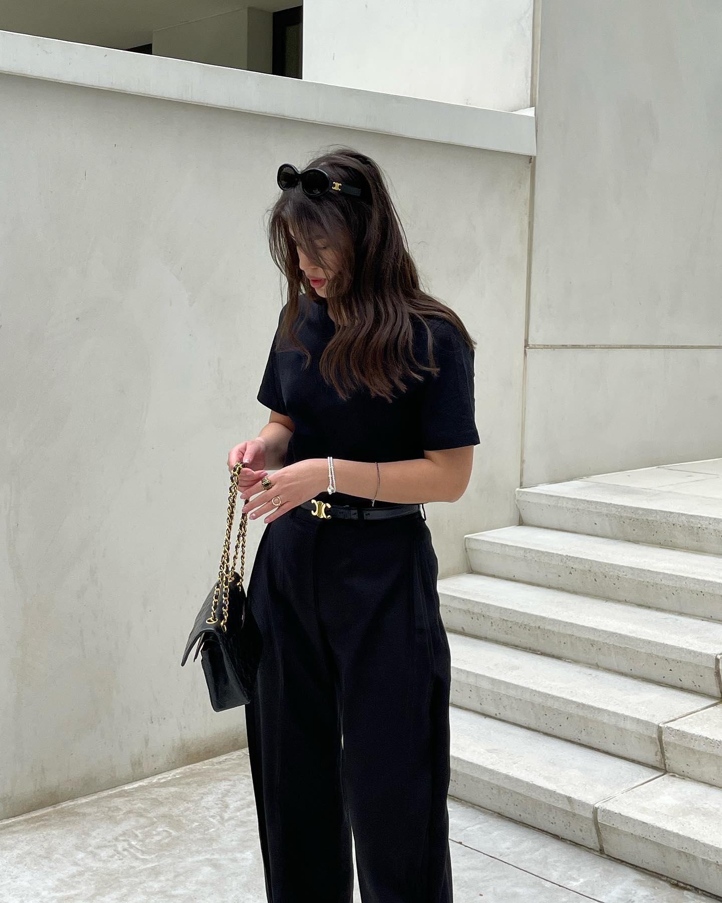 셀린느로 완성한 강혜원 스타일링💙 여유로운 일상에 셀린느 한 스푼, 따라 하고 싶은 데일리룩 참고서 강혜원의 꾸안꾸 스타일링을 완성한 2가지 셀린느 아이템을 소개합니다. 1. 셀린느 트리옹프 캔버스 트라이앵글 파우치 삼각 실루엣이 돋보이는 파우치 백으로, 셀린느 로고와 트리옹프 모노그램이 어우러진 디자인입니다. 크로스백에 프릴 디테일 블라우스와 데님 팬츠를 매치해 귀여운 무드로 연출했습니다. 2. 셀린느 트리옹프 라인스톤 목걸이 크리스탈 장식이 더해진 제품으로, 미니멀한 룩에 포인트가 되는 액세서리입니다. 트리옹프 로고 펜던트가 중심이 되어, 강혜원의 꾸안꾸 룩에 고급스러운 무드를 더해줍니다.강혜원