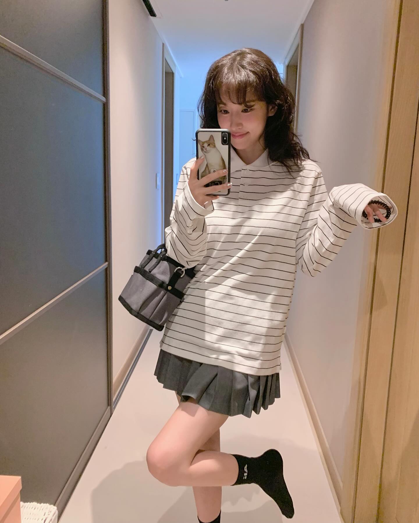 다른 매력의 미니스커트 코디3👗 날씨가 풀리면서 가을은 옷 입는 재미가 더욱 커지는 시즌입니다. 짧은 가을 동안 미니스커트로 다양한 무드를 시도해 보세요! 미니스커트는 미니멀 룩부터 사랑스러운 페미닌 룩까지 다양한 스타일을 연출할 수 있어 매력적입니다. 아래 3가지 미니스커트 스타일링을 참고하여 새로운 변화를 즐겨보세요! 1. 그레이 미니스커트 + 폴로셔츠: 폴로셔츠는 가을 시즌에 자주 착용하는 아이템인데요. 박환희처럼 화이트톤의 스트라이프 폴로셔츠와 그레이 미니스커트를 조합하면, 프레피룩 같으면서도 편안한 꾸안꾸 무드를 연출할 수 있습니다. 2. 체크 미니스커트 + 무채색 니트: 가을의 대표 패턴인 체크 미니스커트는 무채색 니트와 조화를 이루어 분위기 있는 가을룩을 만들어줍니다. 슬기처럼 블랙 뿔테 안경을 추가하면 힙한 포인트를 더할 수 있습니다. 3. 화이트 미니스커트 + 가디건: 화이트 미니스커트는 다양한 색상의 상의와 잘 어울리며, 여리여리한 무드의 가디건과 매치하면 사랑스러운 페미닌 룩을 완성할 수 있습니다.미니스커트