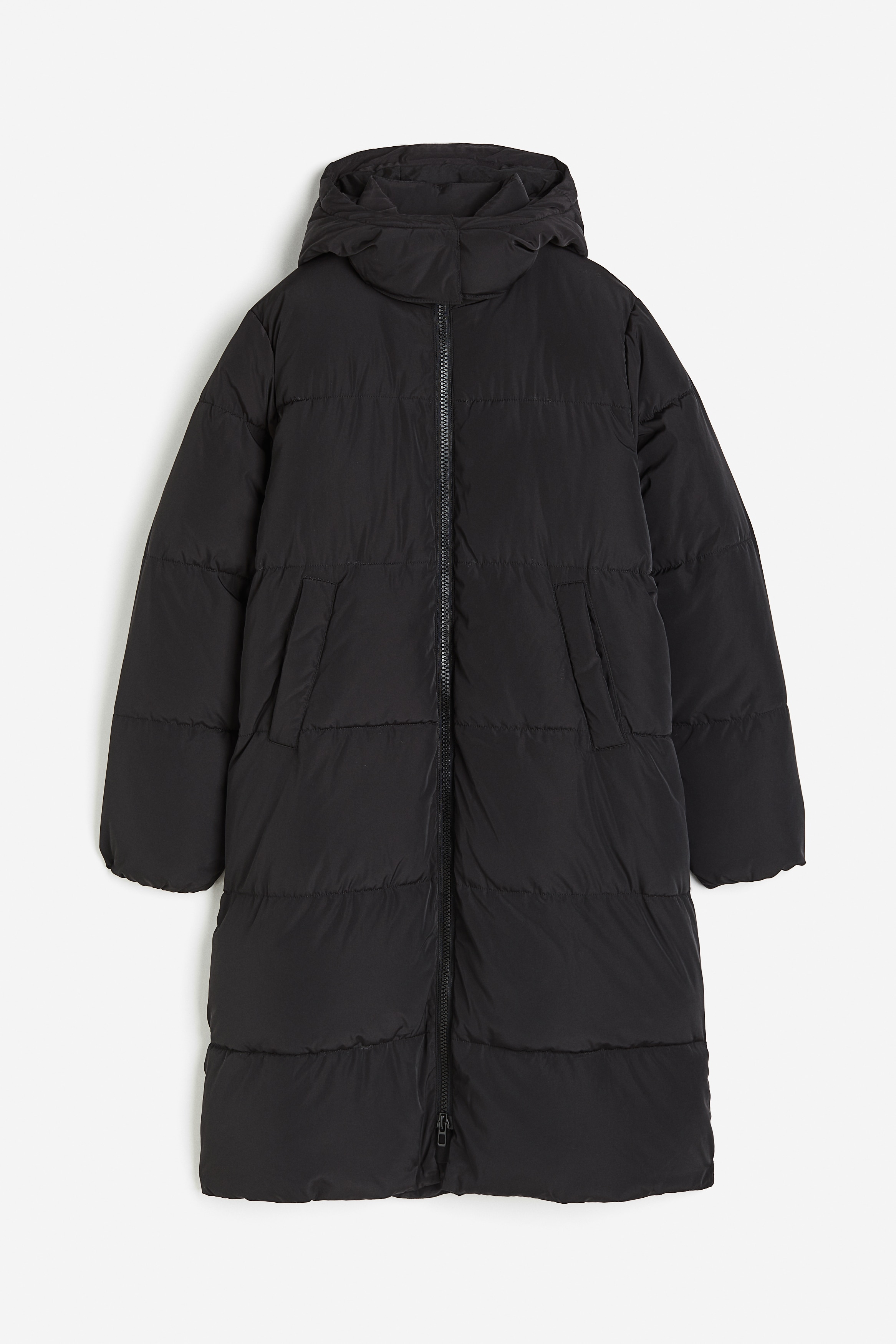 H & M - 롱 퍼프 재킷 - 블랙