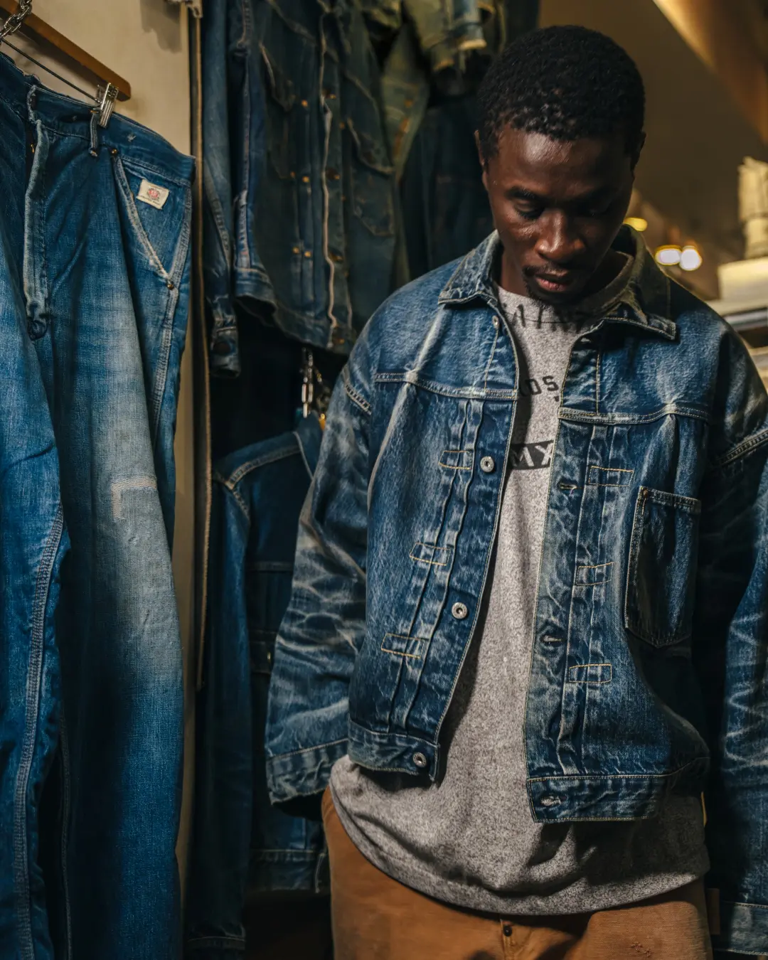 3년간 개발한 원단, 대각선 프린트, 희소한 T-back 실루엣의 데님 재킷, 그리고 장인의 손길로 완성된 하치노 디테일까지. 베르베르진 디렉터 후지하라 유타카의 안목이 그대로 녹아 있습니다.