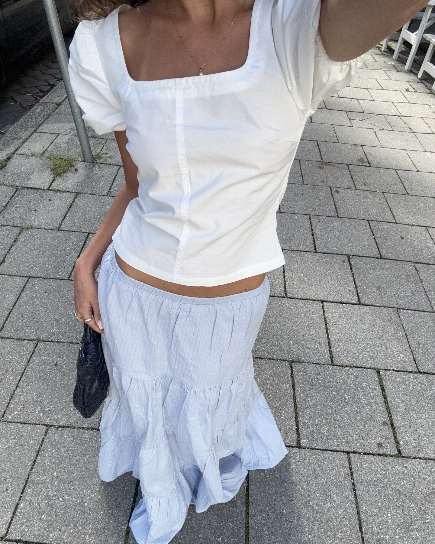 반팔블라우스 러블리룩 참고🤍🩵 봉긋한 퍼프 소매 화이트 블라우스에 청바지로 꾸안꾸✨반팔블라우스