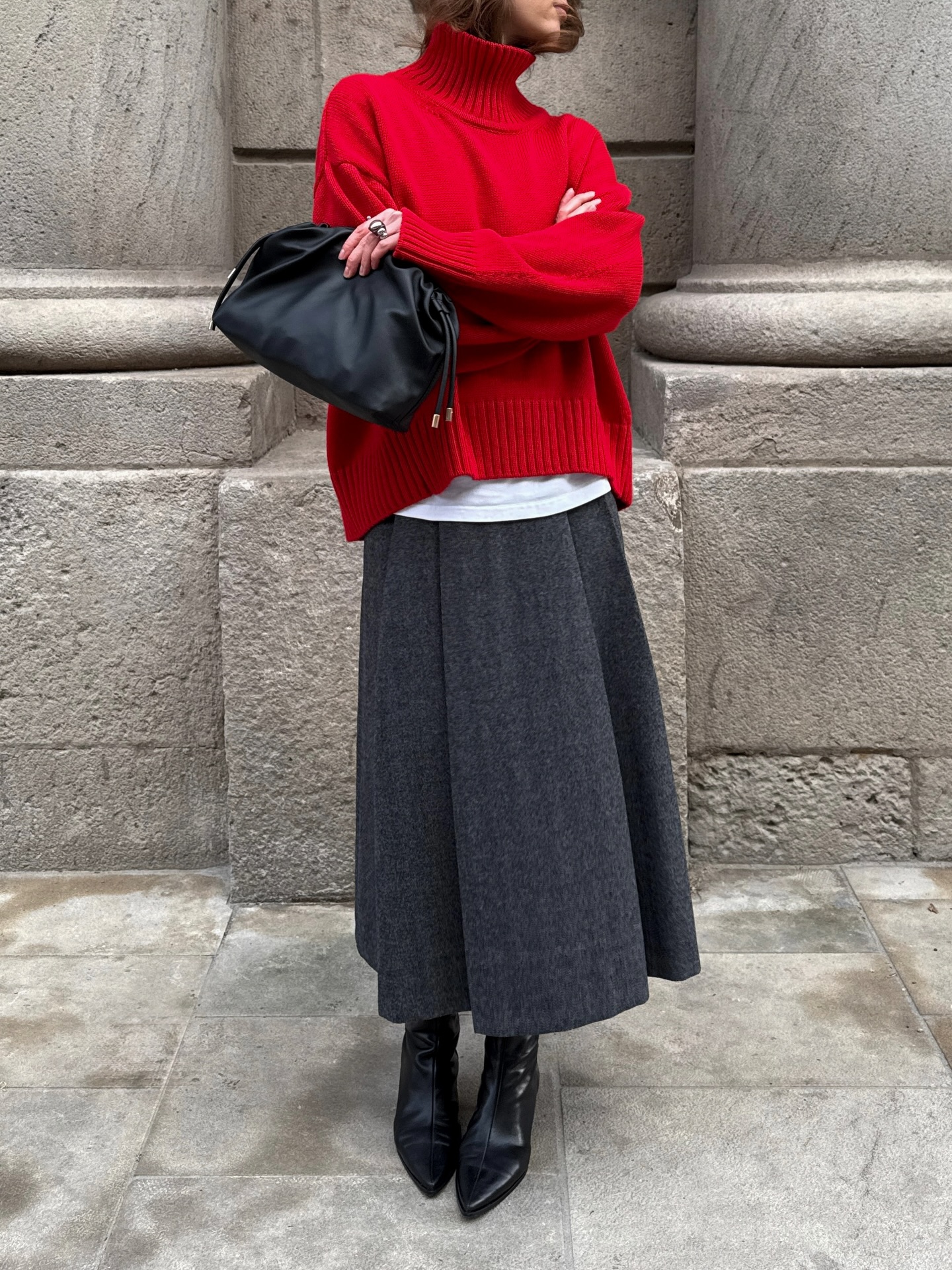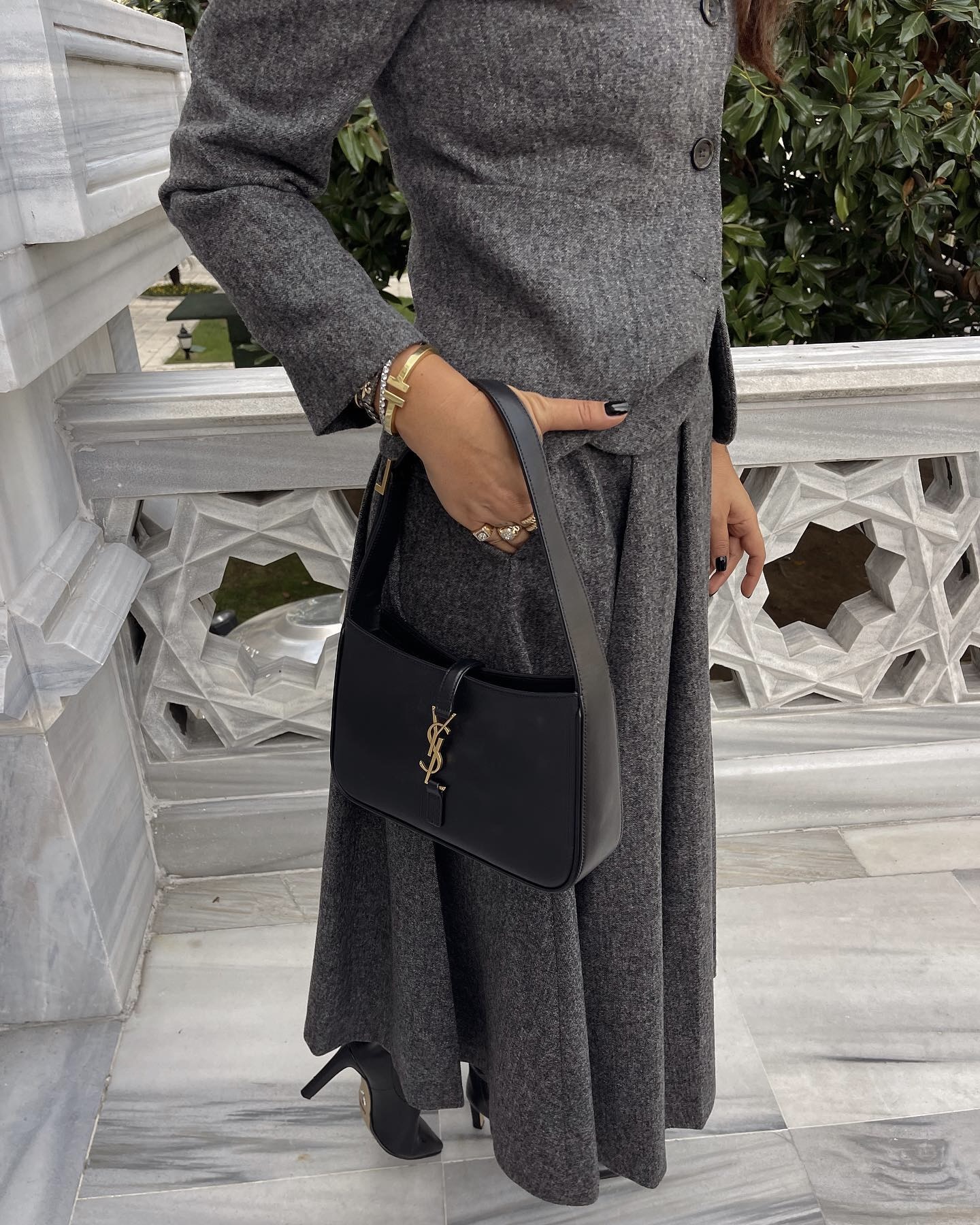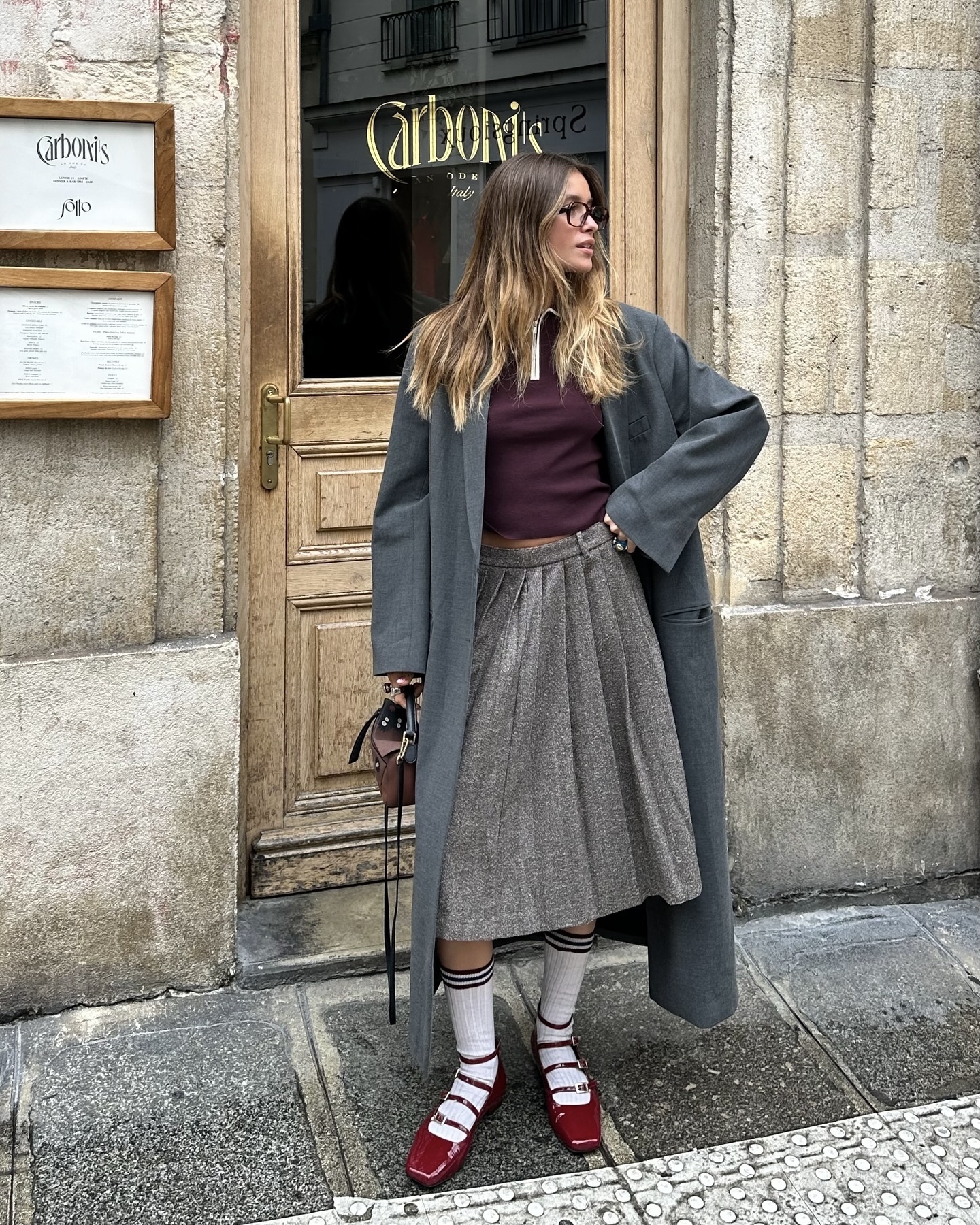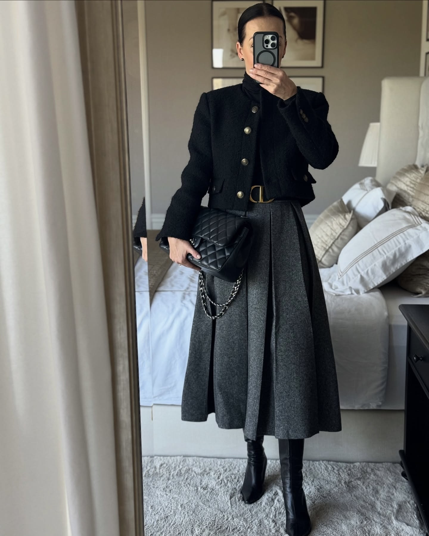 디올 가방, 가디건, 니트, 청바지, 레더자켓, 헤어스타일링