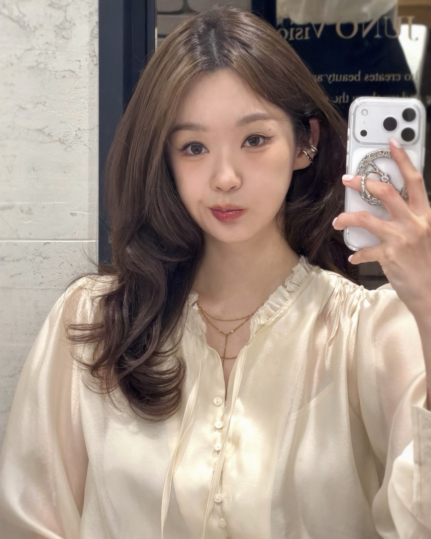 앞머리 고민? 이제 끝이야😎 장원영의 최근 인스타그램 포스트에는 눈에 띄는 공통점이 있죠. 바로 앞머리! 풀 뱅 스타일로 꽉 채운 앞머리가 시선을 사로잡는데요. 장원영뿐만이 아닙니다. 아일릿 모카, 르세라핌 은채, 에스파 윈터, 카리나 등 핫한 스타들도 모두 풀 뱅 헤어스타일을 선보이고 있죠. 풀 뱅은 얼굴형을 보완하는 데 탁월한 스타일입니다. 특히 이마가 넓거나 얼굴이 긴 편이라면 더욱 잘 어울리는데요. 앞머리가 이마를 가려주면서 얼굴 비율을 조정해 주기 때문이죠. 둥근 얼굴형이라도 풀 뱅을 적당한 길이로 조절하면 귀여우면서도 세련된 느낌을 살릴 수 있습니다. 스타들의 풀 뱅 스타일링을 보면, 단순히 앞머리를 내리는 것에서 끝나지 않는다는 걸 알 수 있습니다. 장원영처럼 윤기 나는 생머리와 함께 연출하면 클래식한 분위기, 모카처럼 내추럴한 웨이브를 더하면 러블리한 무드도 연출할 수 있습니다. 은채처럼 레이어드 컷과 함께하면 더욱 자연스러운 느낌을 낼 수 있죠. 풀 뱅의 가장 큰 장점은 얼굴선을 따라 흐르는 앞머리와 함께 다양한 스타일링이 가능하다는 점인데요. 앞머리를 완전히 내리면 차분한 이미지, 살짝 옆으로 넘기면 내추럴한 분위기까지 연출할 수 있어 활용도가 높습니다. 다가오는 따뜻한 계절, 헤어스타일 변신을 고민하고 있다면 풀 뱅은 어떨까요? 이 사진을 들고 미용실로 출발해 봅시다! ✂️✨장원영