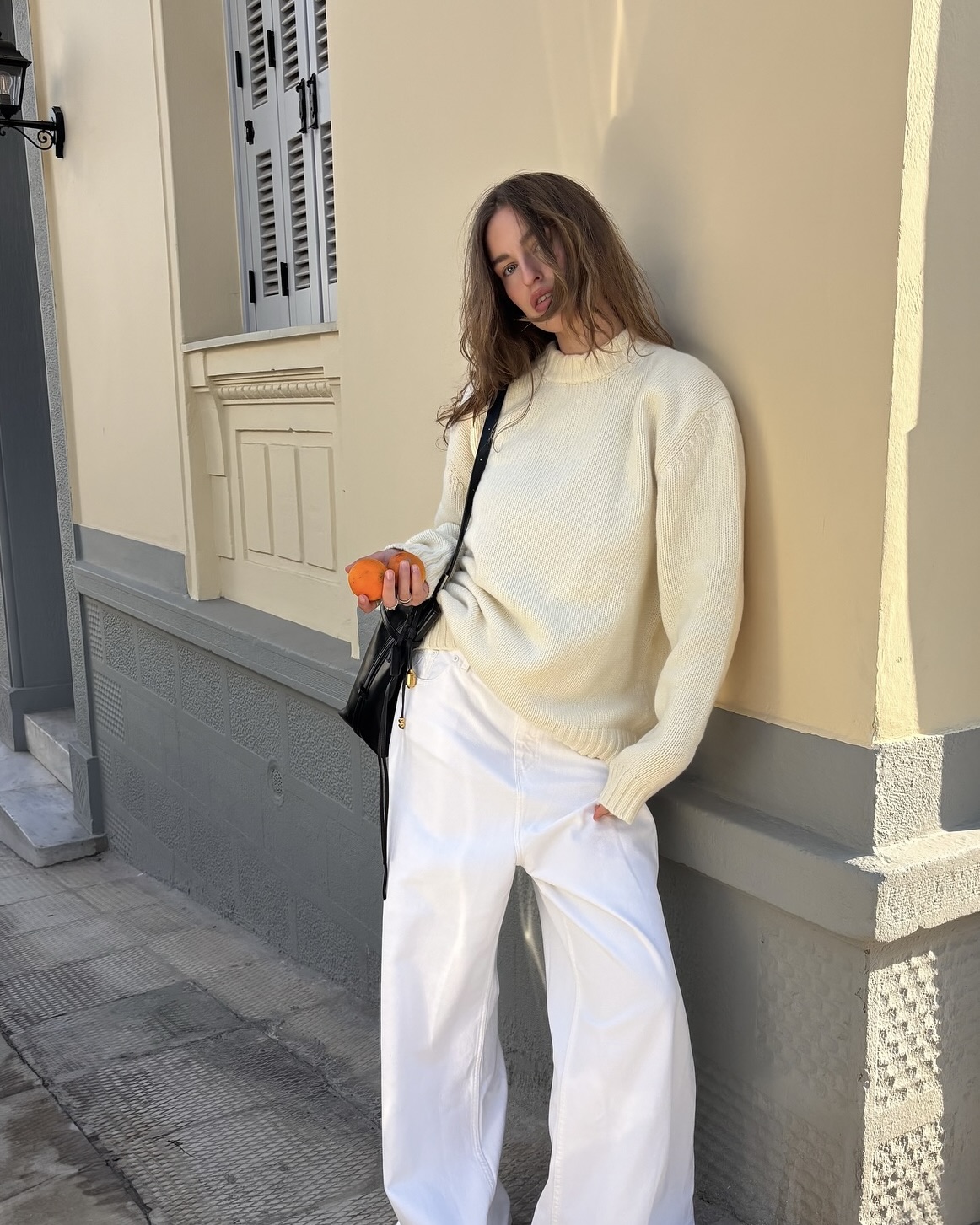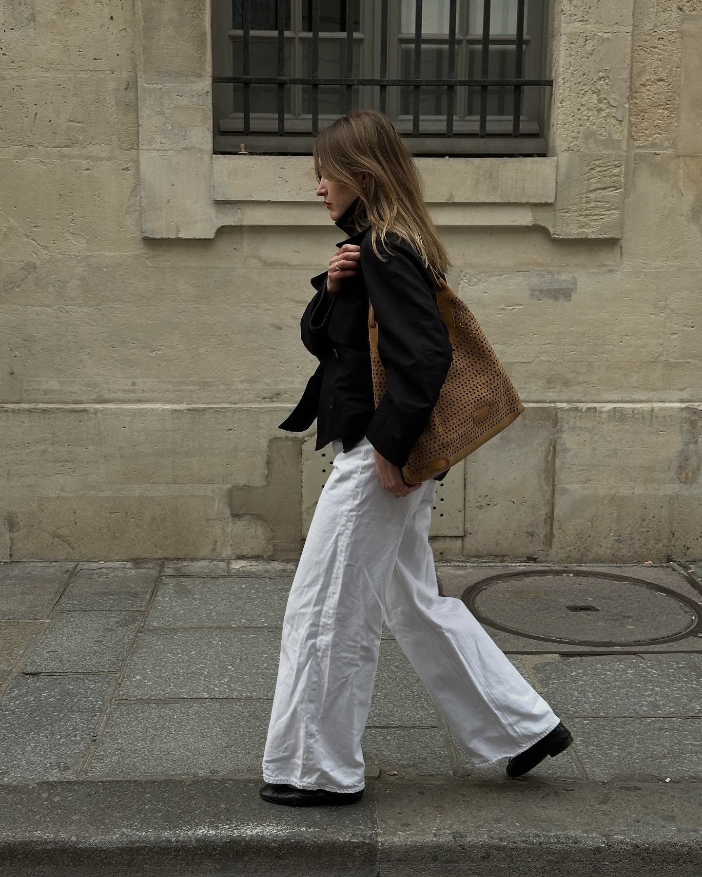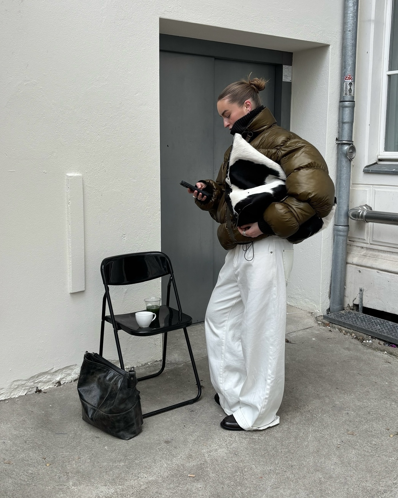 어두운 아우터에 화이트 팬츠 환기✨ 올해의 컬러 클라우드 댄서인 화이트 팬츠로 산뜻함 더하자🤍💨