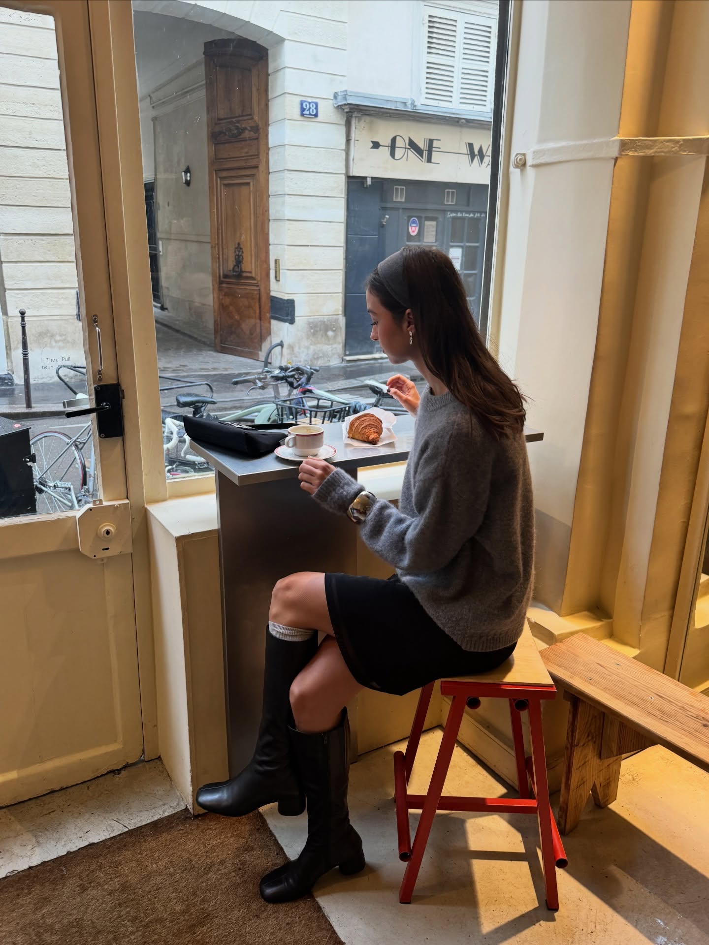 그레이 니트는 역시 화이트야🐇 겨울 미니멀 정석? 그레이 니트와 화이트 스커트나 팬츠 조합🩶🤍