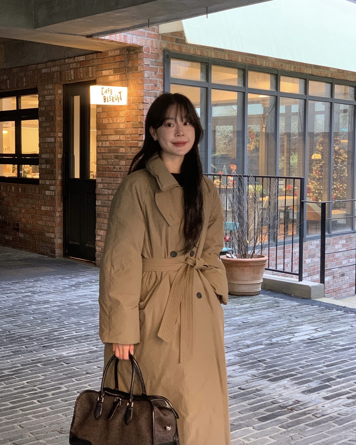 롱코트에 트렌디한 빅백 메기👜🤎