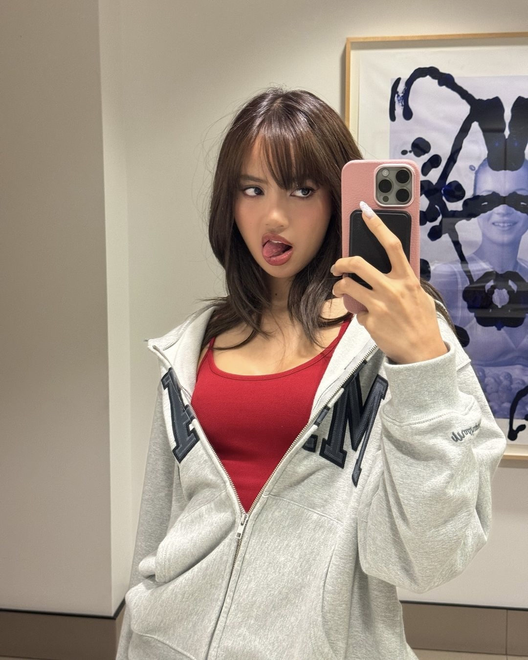 핑크후디가 찰떡🩷카리나 원숄더 포인트로 더 힙하게✨