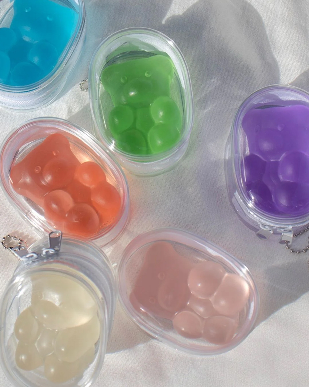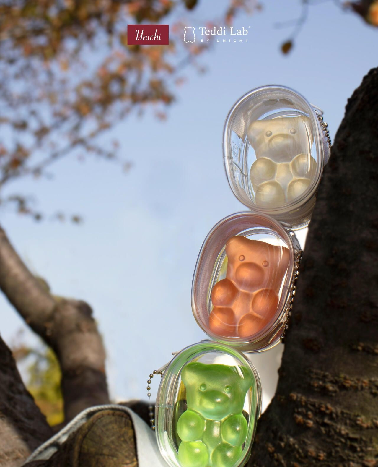 에스파 닝닝 손에 들린 말랑한 곰돌이, 호주 웰니스 브랜드 Unichi의 스퀴시 아이템입니다. 스퀴시는 스트레스볼처럼 손으로 눌러 촉감을 즐기며 긴장을 풀어주는 소품인데요. 테디 랩 스퀴시 베어는 투명 케이스에 담겨 가방에 달아 포인트로 활용할 수 있죠.