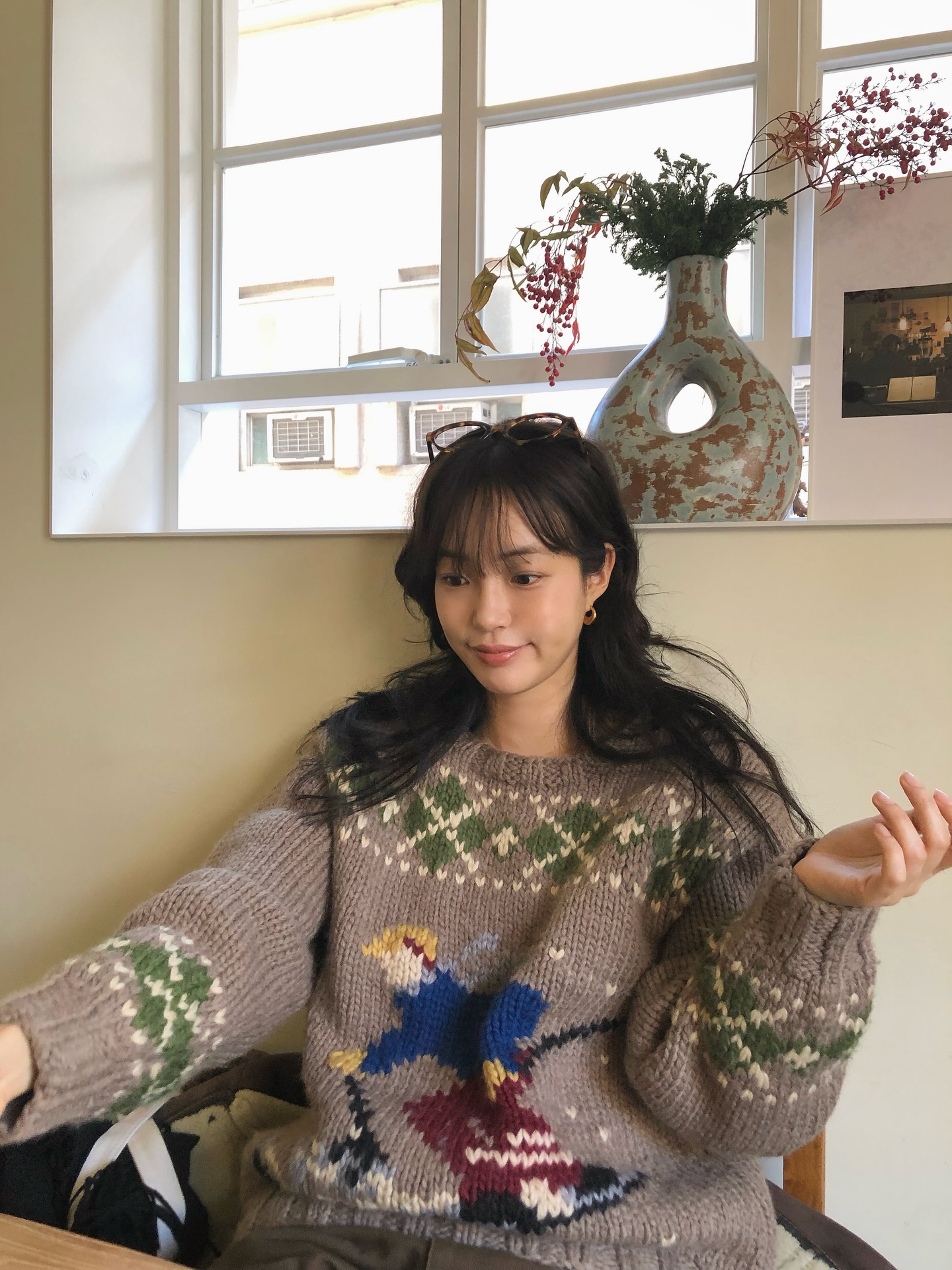 페어 아일 니트처럼 패턴이 돋보이는 아이템을 더해 포인트를 주는 스타일링도 즐기며, 과하지 않으면서도 미니멀한 데일리 룩을 참고해 보세요. 이미지9