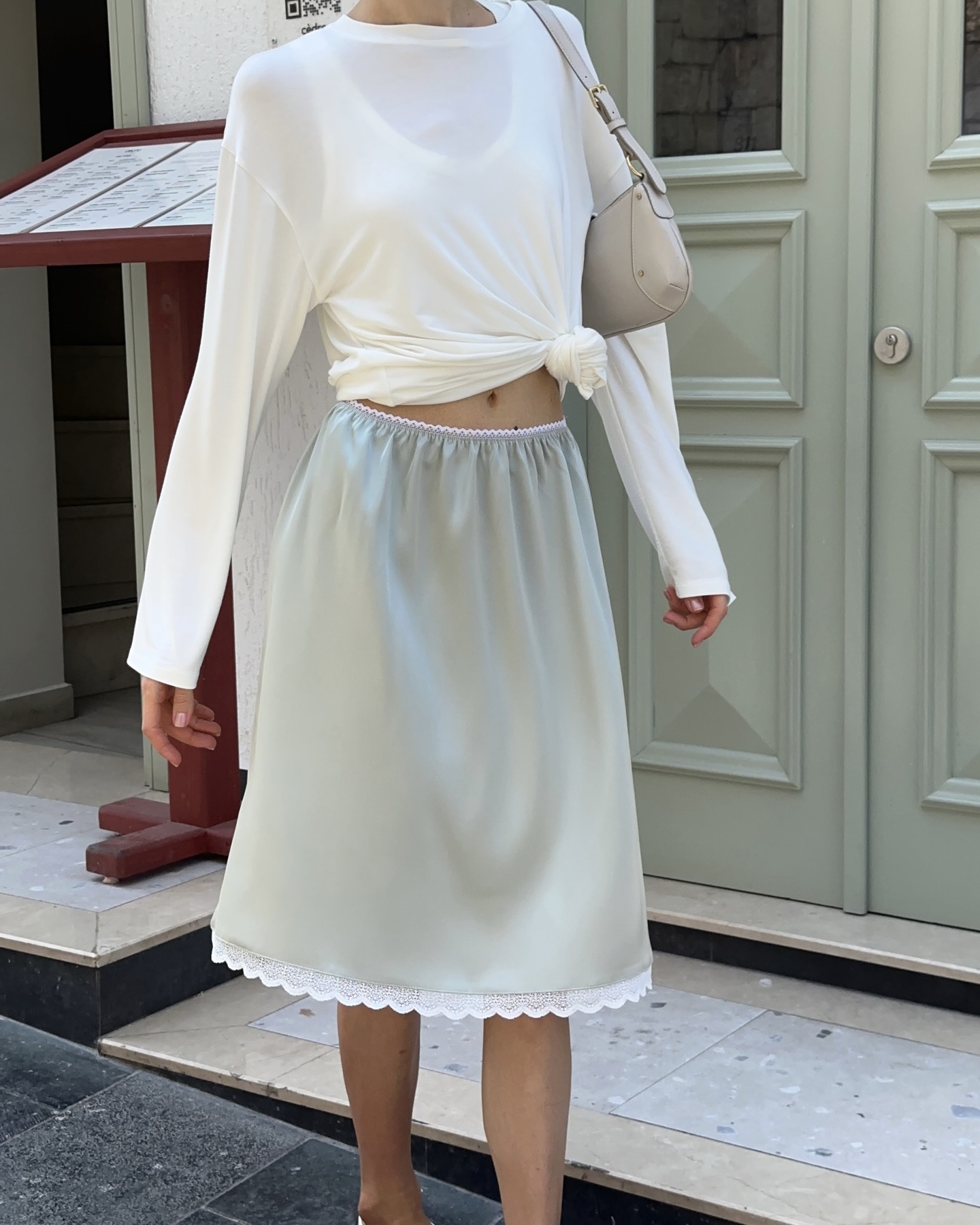 컬러 또한 분위기가 달라지는데요. 뉴트럴 컬러는 절제된 세련미를, 파스텔 톤은 산뜻한 계절감을 더하죠. 여기에 레이스 디테일이 더한 디자인은 여성스러움을 강조합니다. 새틴 스커트는 심플한 룩을 한층 럭셔리하게 끌어올리는 포인트 아이템입니다. 이미지3