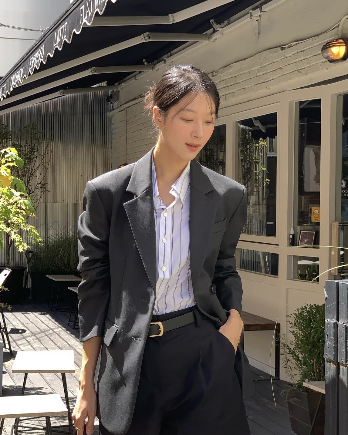 간절기룩은 고현정처럼☁️🤍 랄프로렌으로 미리 보는 간절기 스타일링🍂 고현정이 랄프로렌 간절기 스타일링을 선보였습니다. 평소 셔츠를 즐겨 입는 고현정은 이번에도 편안하고 단정한 무드의 스타일링을 보여줬는데요. 블루 스트라이프 패턴 셔츠에 화이트 슬리브리스를 이너로 매치해 깔끔하고 세련된 룩을 완성했습니다. 스트레이트 레그 팬츠에 RL 로고가 새겨진 시그니처 레더 벨트를 매치해 고급스러운 분위기를 더했고, 브라운 컬러의 샌들로 톤온톤 포인트를 주었습니다. 블랙 토트백으로 마무리해 세련된 무드를 완성했죠. 단정하고 세련된 고현정의 스타일링, 이번 간절기 시즌에 참고해보세요.랄프로렌
