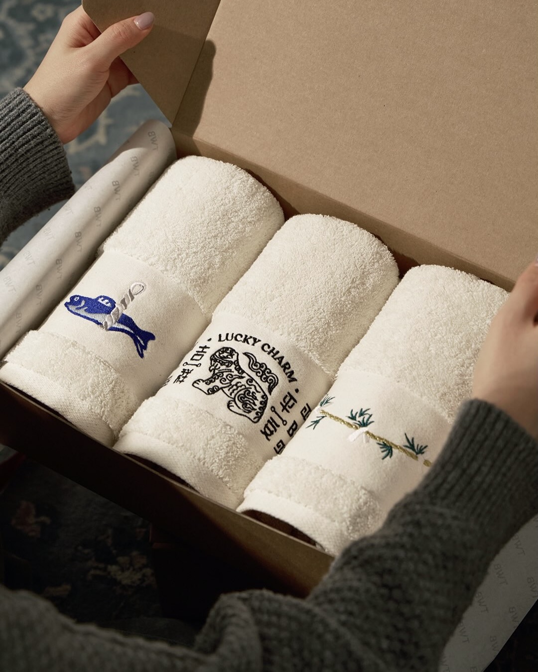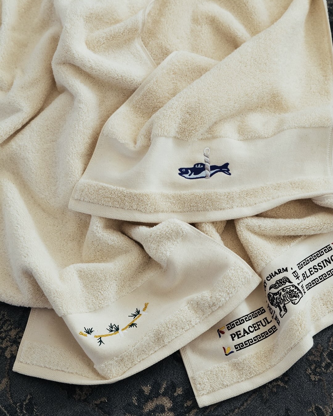 액막이 명태나 금줄처럼 모티브를 담은 시리즈는 또 다른 매력을 보여줍니다. 평안과 무탈의 의미로 선물용으로도 좋은 아이템이죠. 평범한 수건 대신 디자인 타월을 찾고 있다면 참고해보세요.