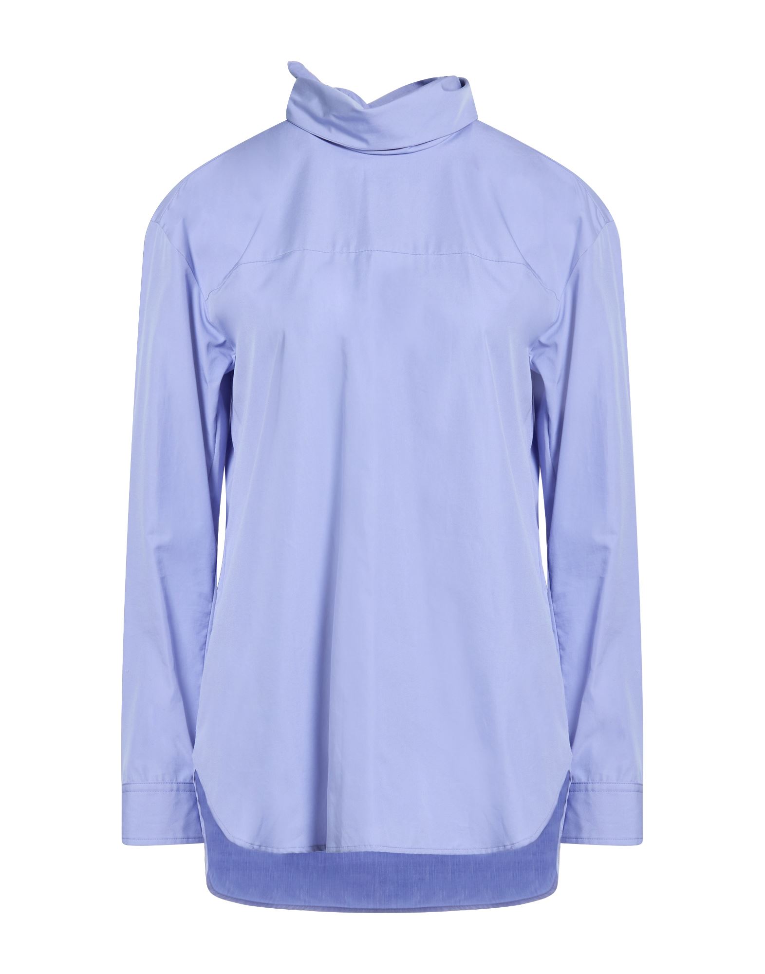 루쉬 디테일 탑, 크레이프, 솔리드 컬러, 러플, 목 넥, 롱 슬리브, 드라이클리닝, 표백 금지, 건조기 사용불가.