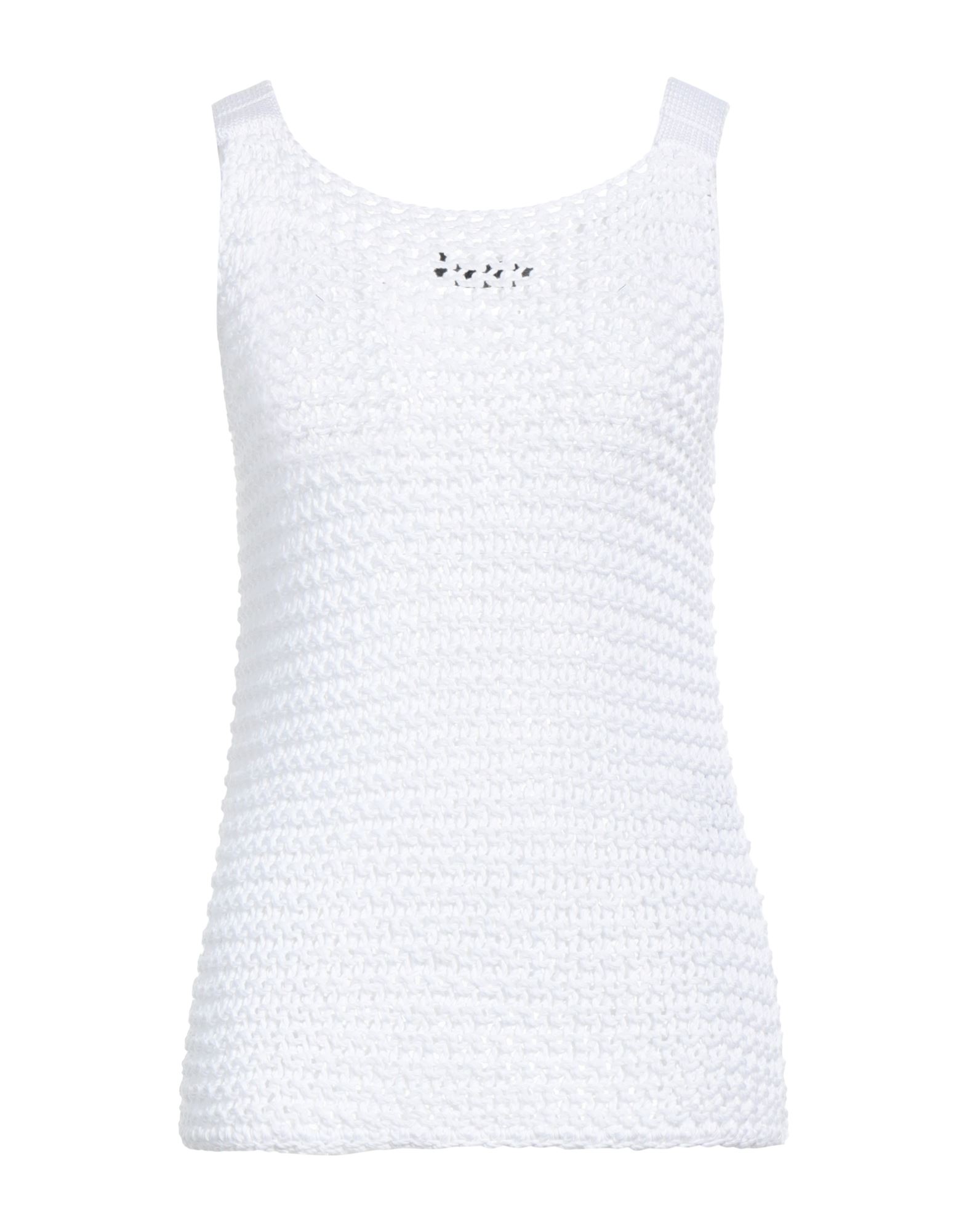 니트 소재, 리브(rib) 조직, 라이트웨이트 니트, 브랜드 로고, 솔리드 컬러, 크루넥, 슬리브리스, 포켓 없음.