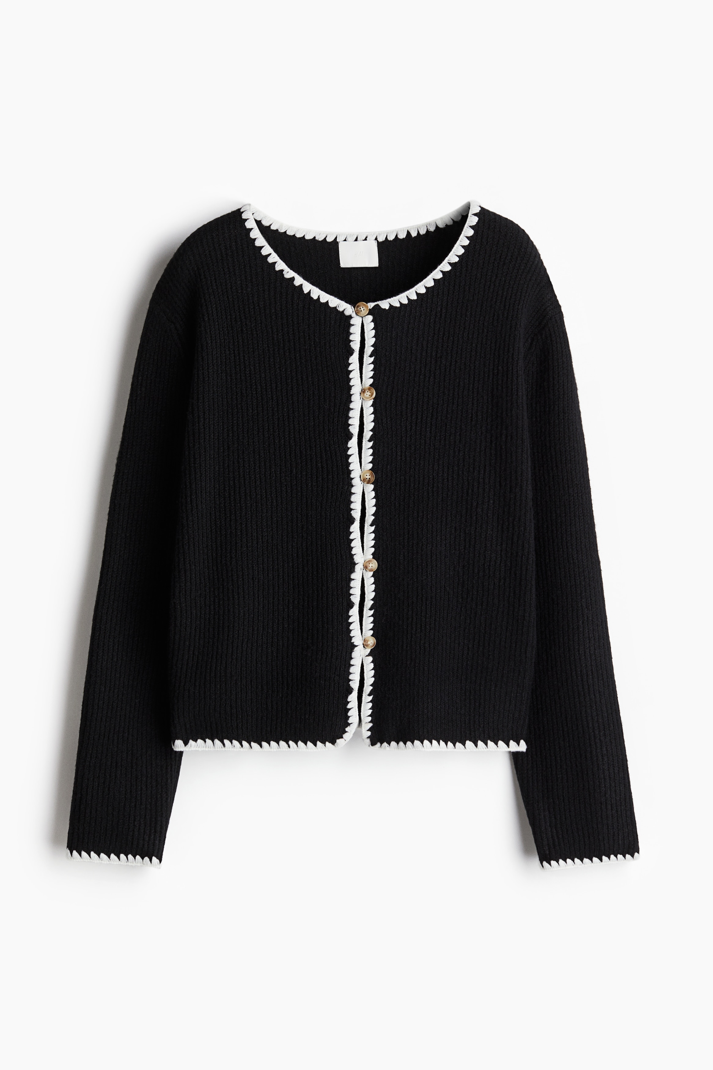 H & M - 블랭킷 스티치 가디건 - 블랙