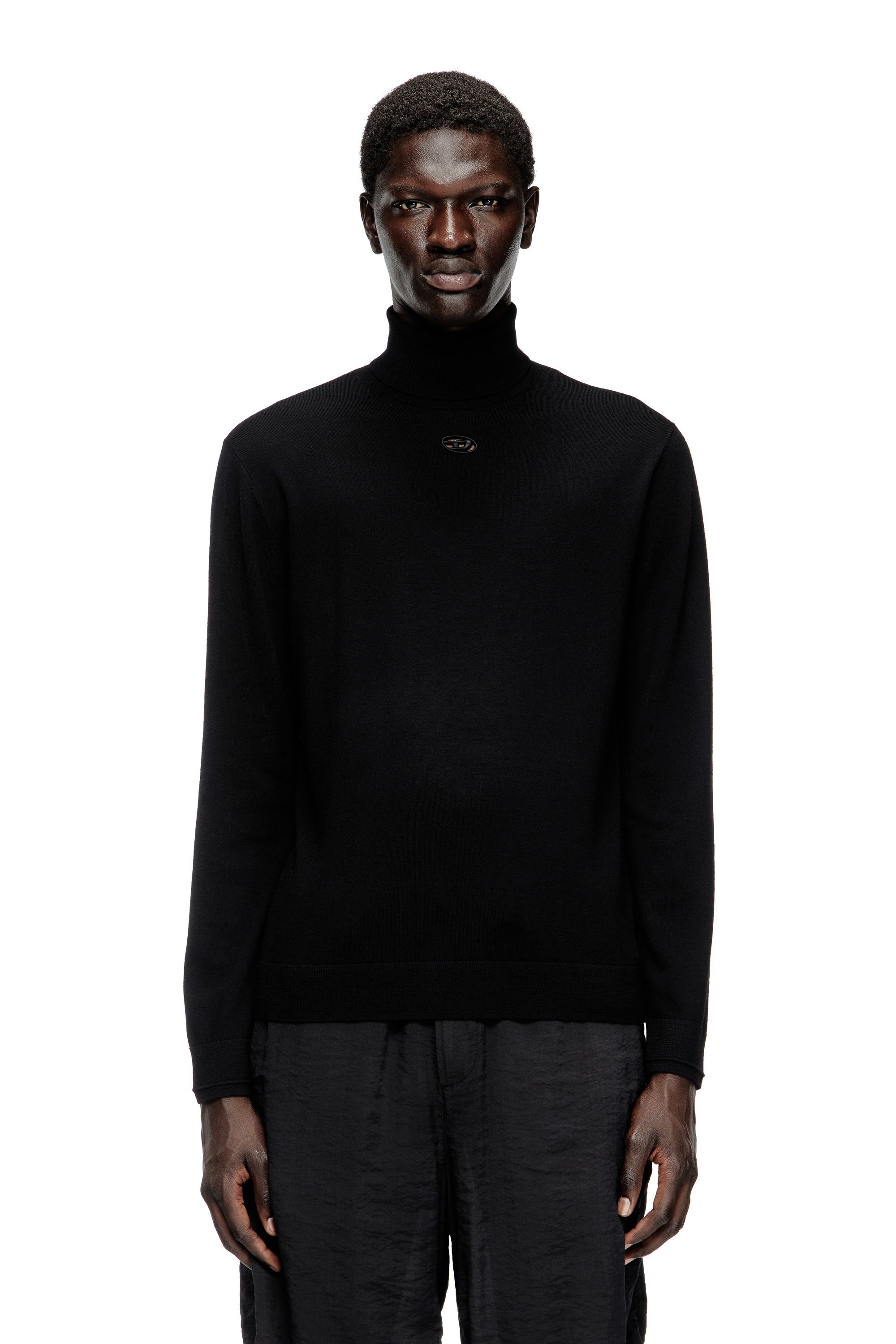 디젤 울 터틀넥 점퍼 컷아웃 로고 니트웨어 맨 블랙