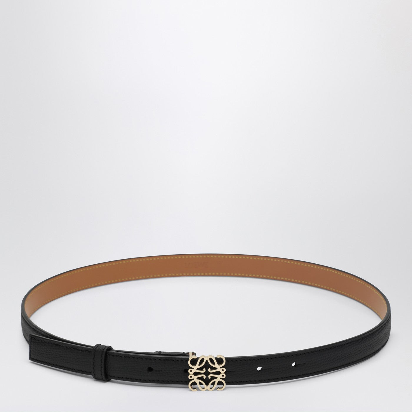로에베 블랙/골드 가죽 아나그램 벨트
