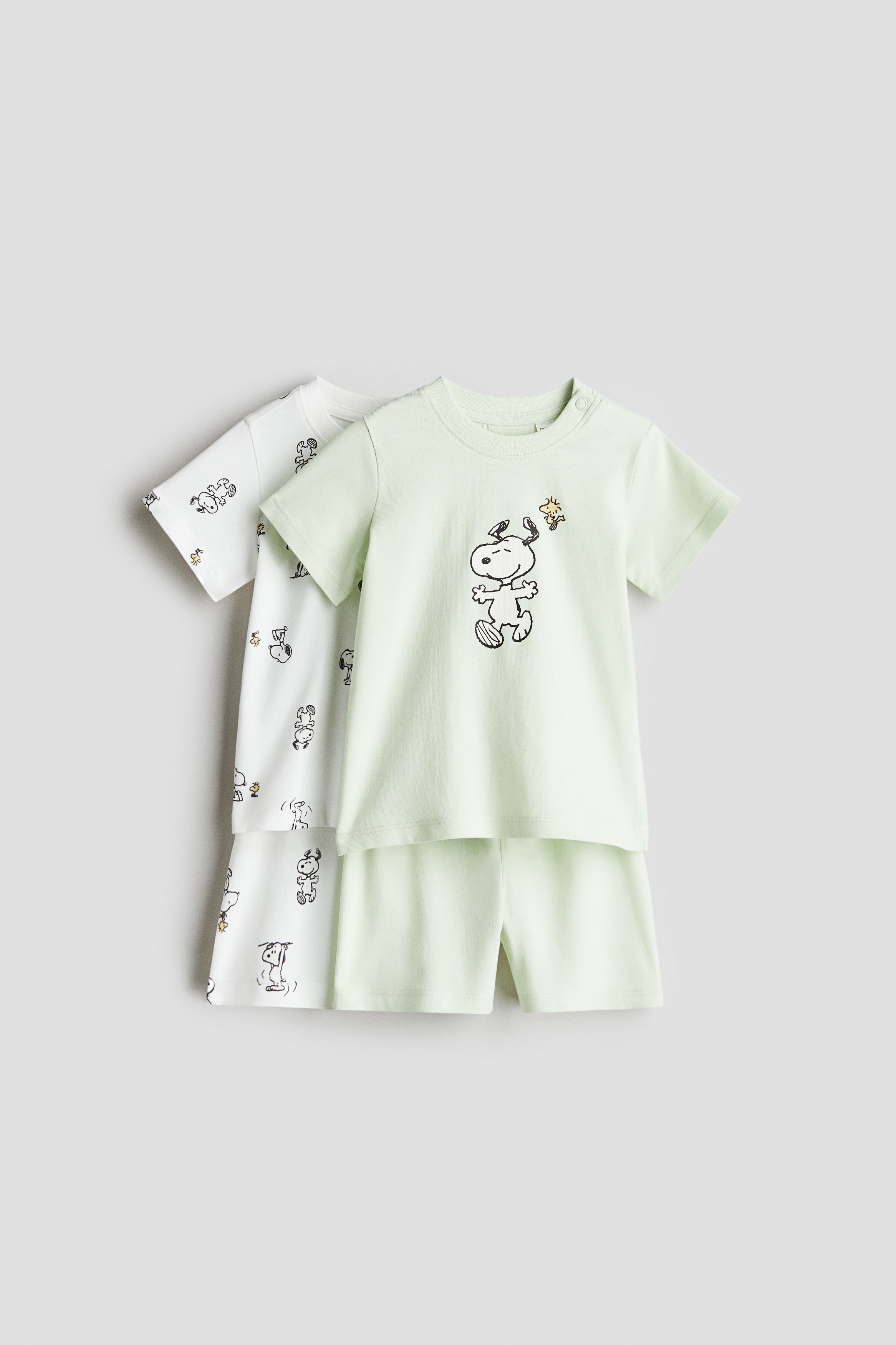 H & M - 코튼 파자마 2피스 세트 - 그린