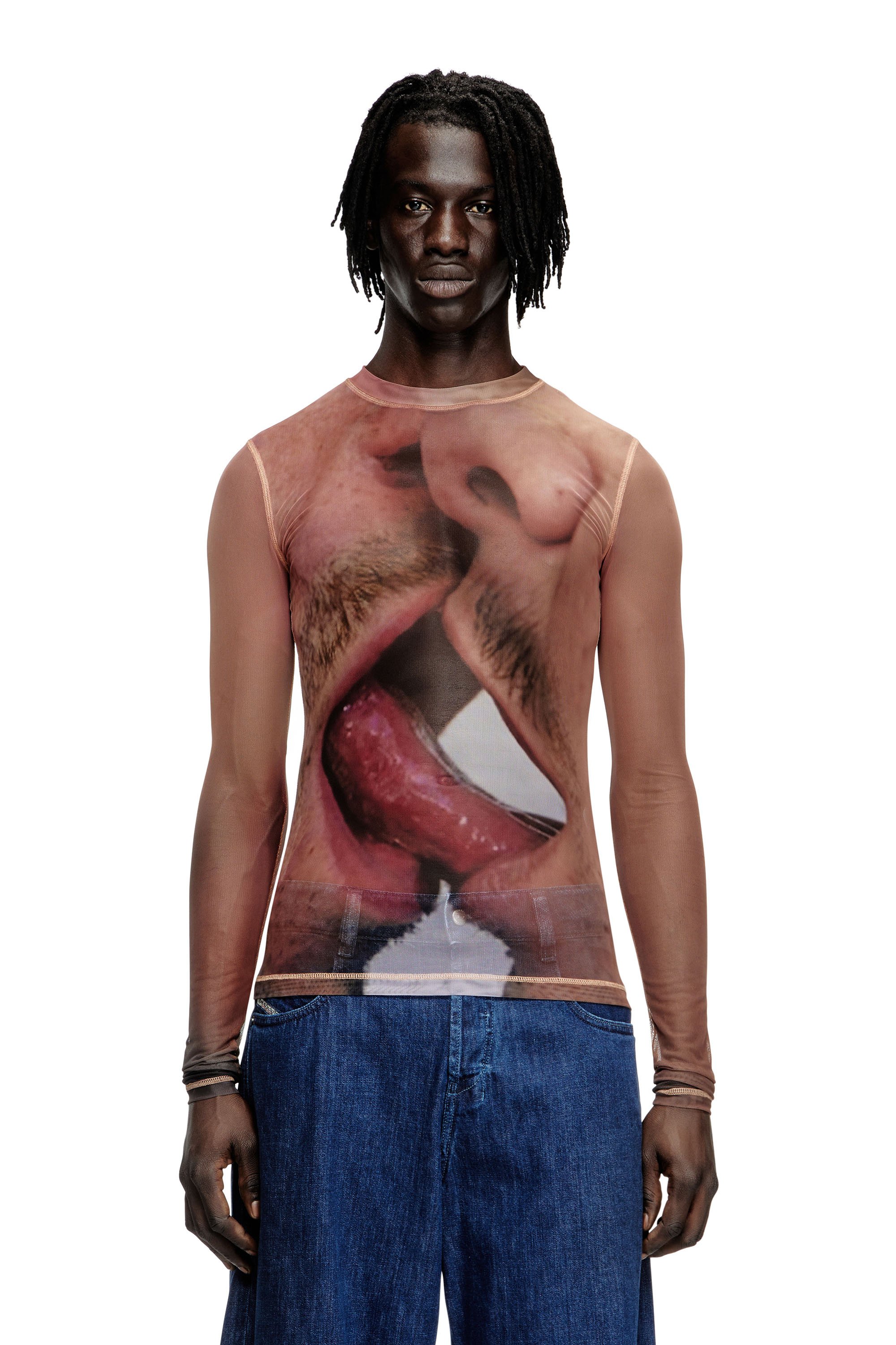 Diesel Longsleeve top in printed technical mesh TShirts Unisex Pink