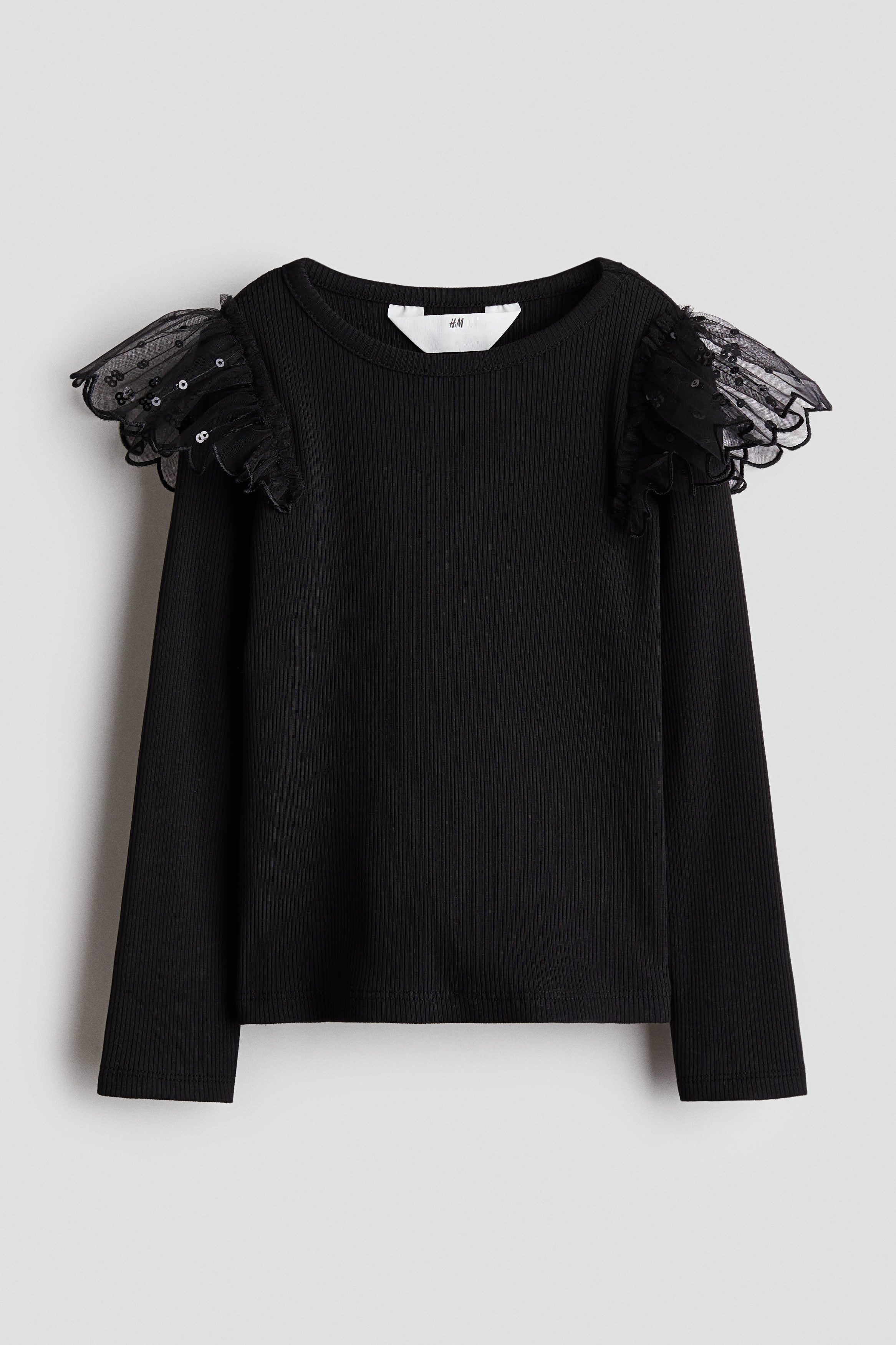 H & M - 튤 디테일 코튼 탑 - 블랙
