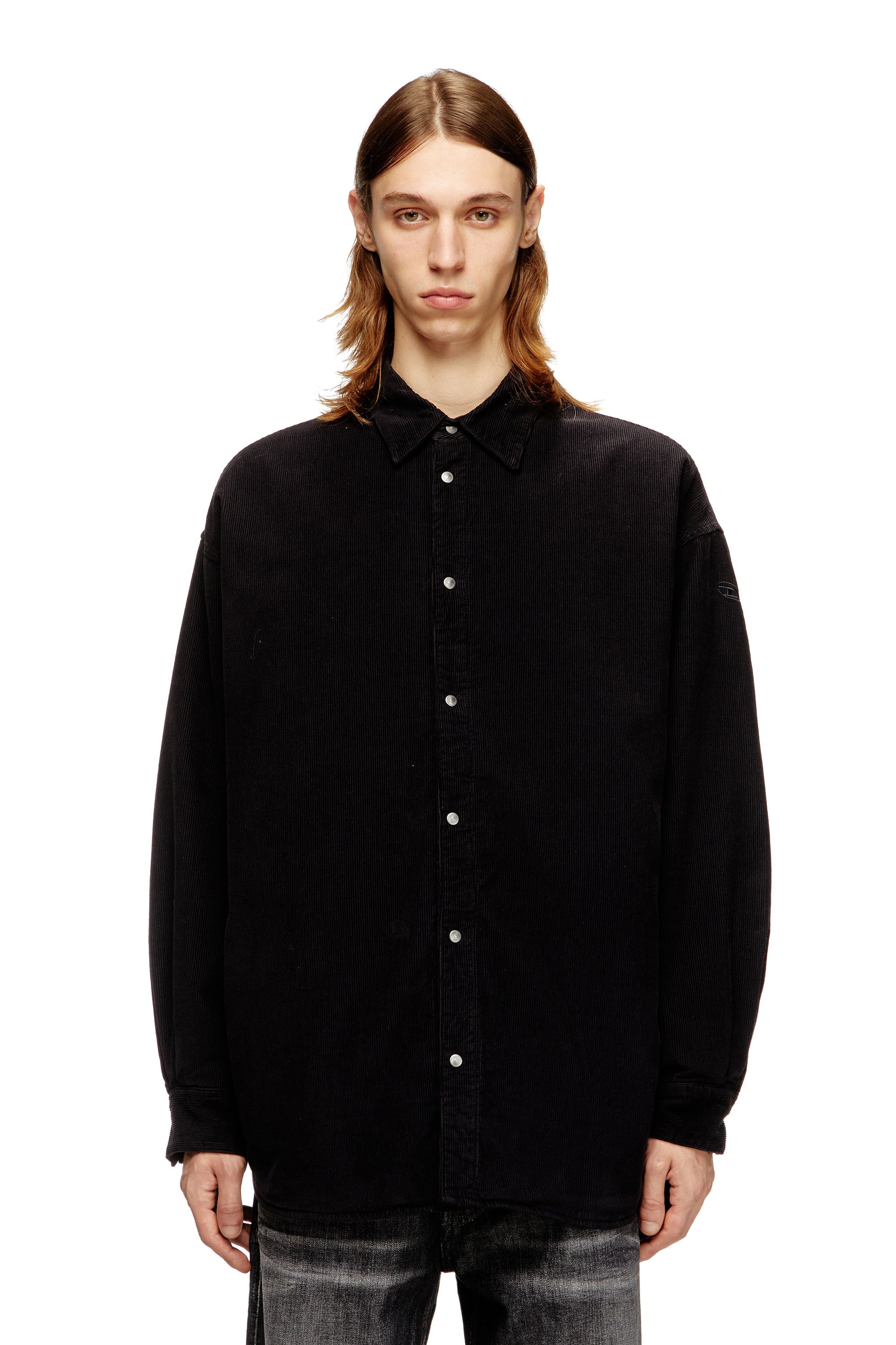 디젤 코튼 셔츠, 오벌 D 자수, 셔츠 블랙 남성용
