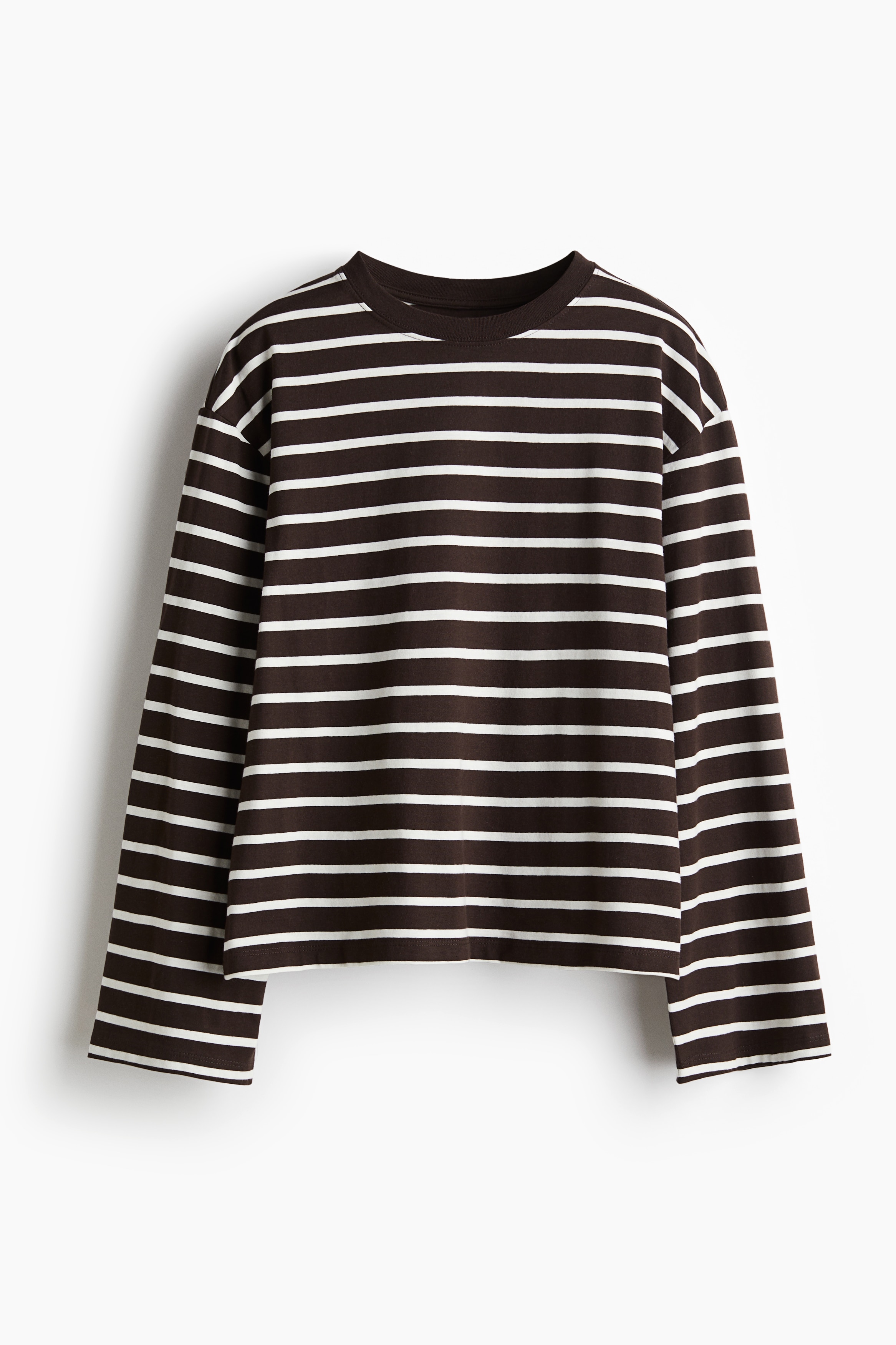 H & M - 롱 슬리브 코튼 탑 - 브라운