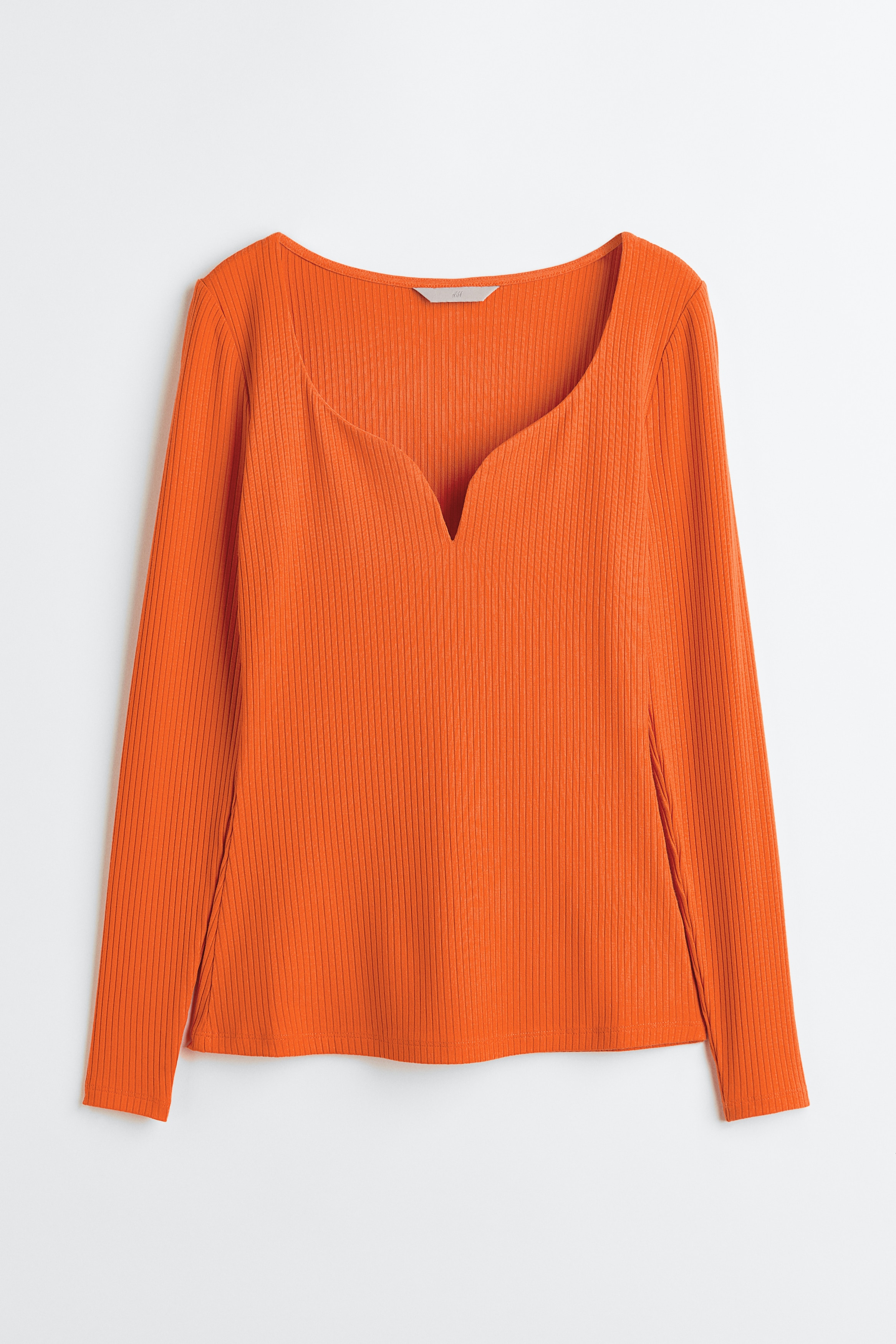 H & M - 롱 슬리브 리브드 탑 - 오렌지