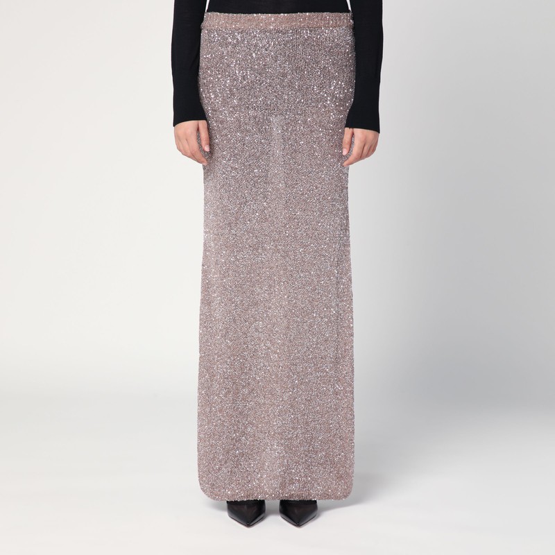 발렌시아가 라이트 스팽글 맥시 스커트 브라운/실버