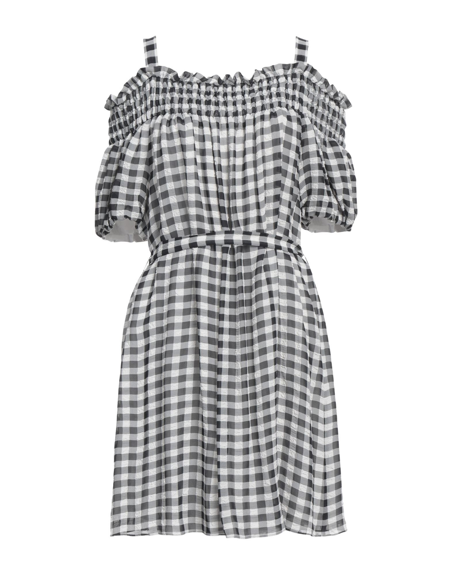 크레이프, 장식 부착 없음, 체크, 와이드 네크라인, 쇼트 슬리브, 셀프타이/스트링 여밈, 포켓 없음, 물세탁 불가, 건조기 사용불가, 표백 금지, 플레어 드레스.