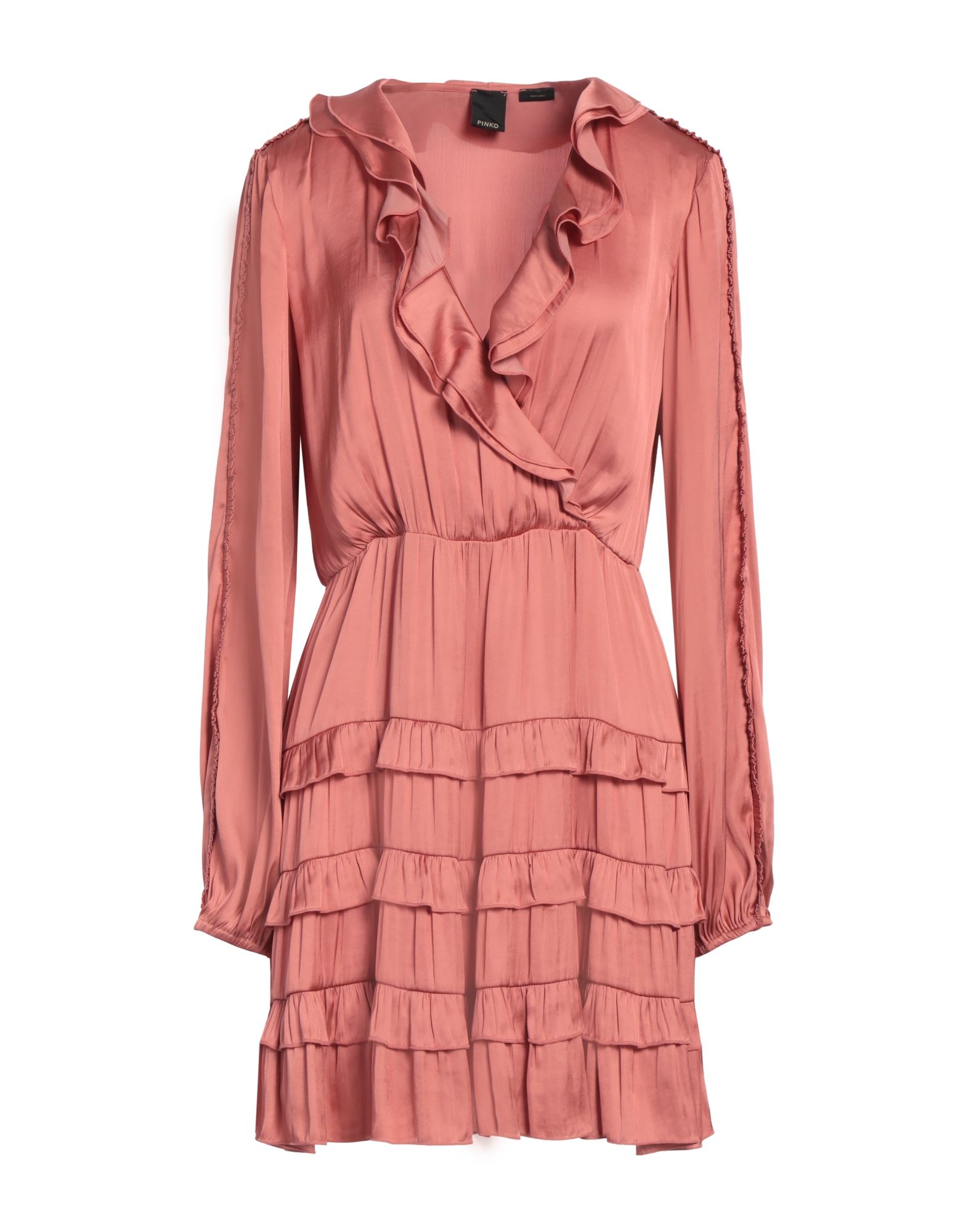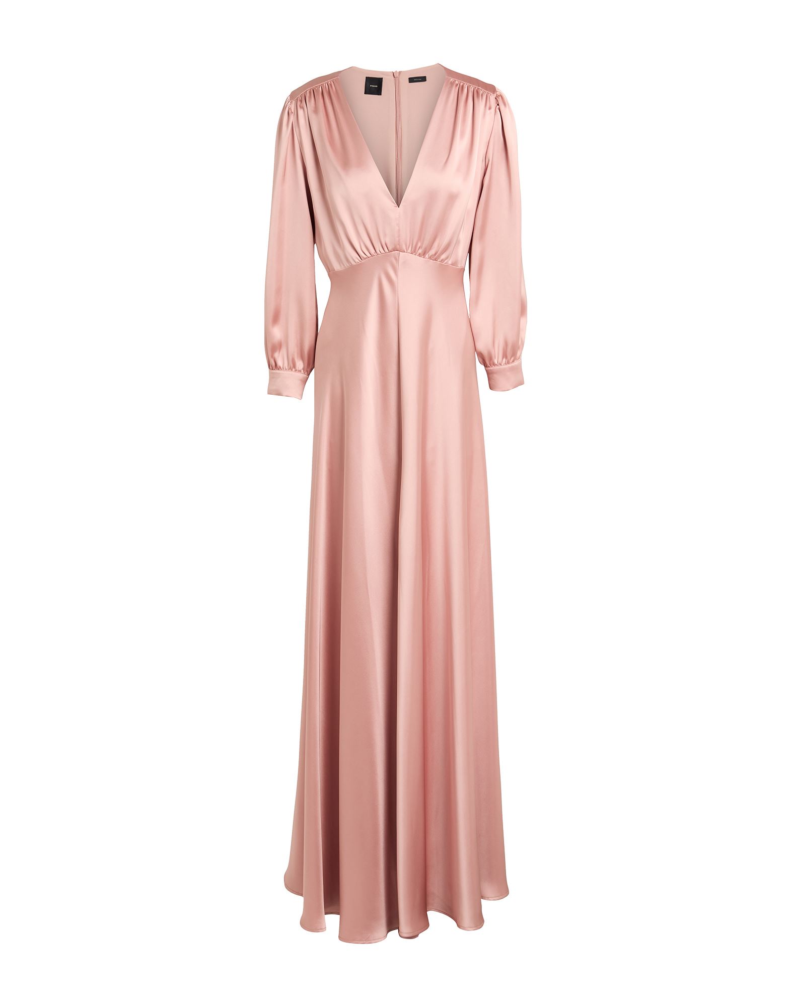 새틴, 주름효과, 솔리드 컬러, v 네크라인, 롱 슬리브, 부분적으로 안감 처리한 내부, 지퍼 클로저, 포켓 없음, 트라페즈 스커트.