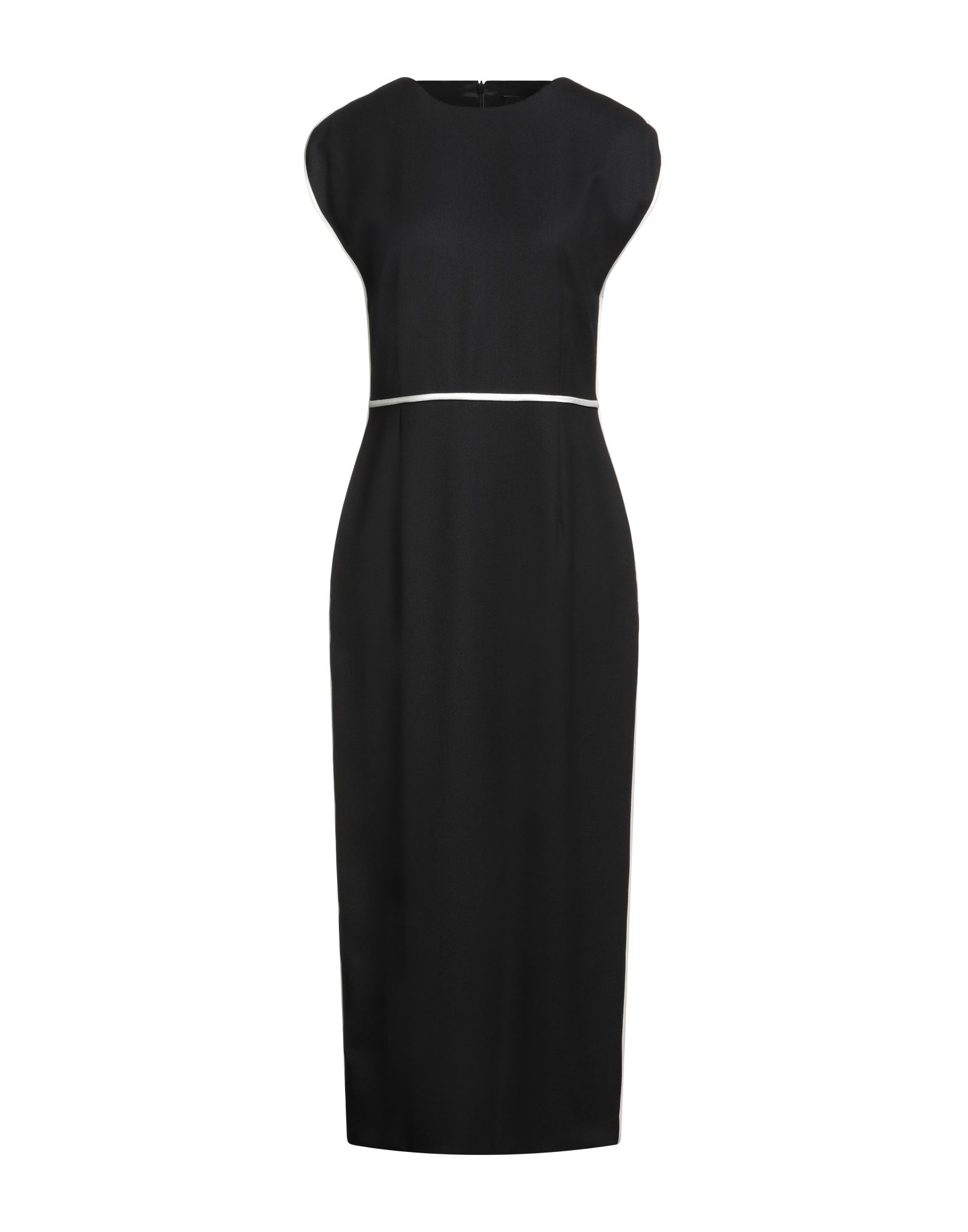 바디콘 드레스, 트윌, 스트레치 패브릭, 장식 디테일 솔리드 컬러, 새틴 트리밍, 크루넥, 슬리브리스, 안감있음, 지퍼 여밈, 백 슬릿, 드라이클리닝, 표백 금지, 건조기 사용불가.