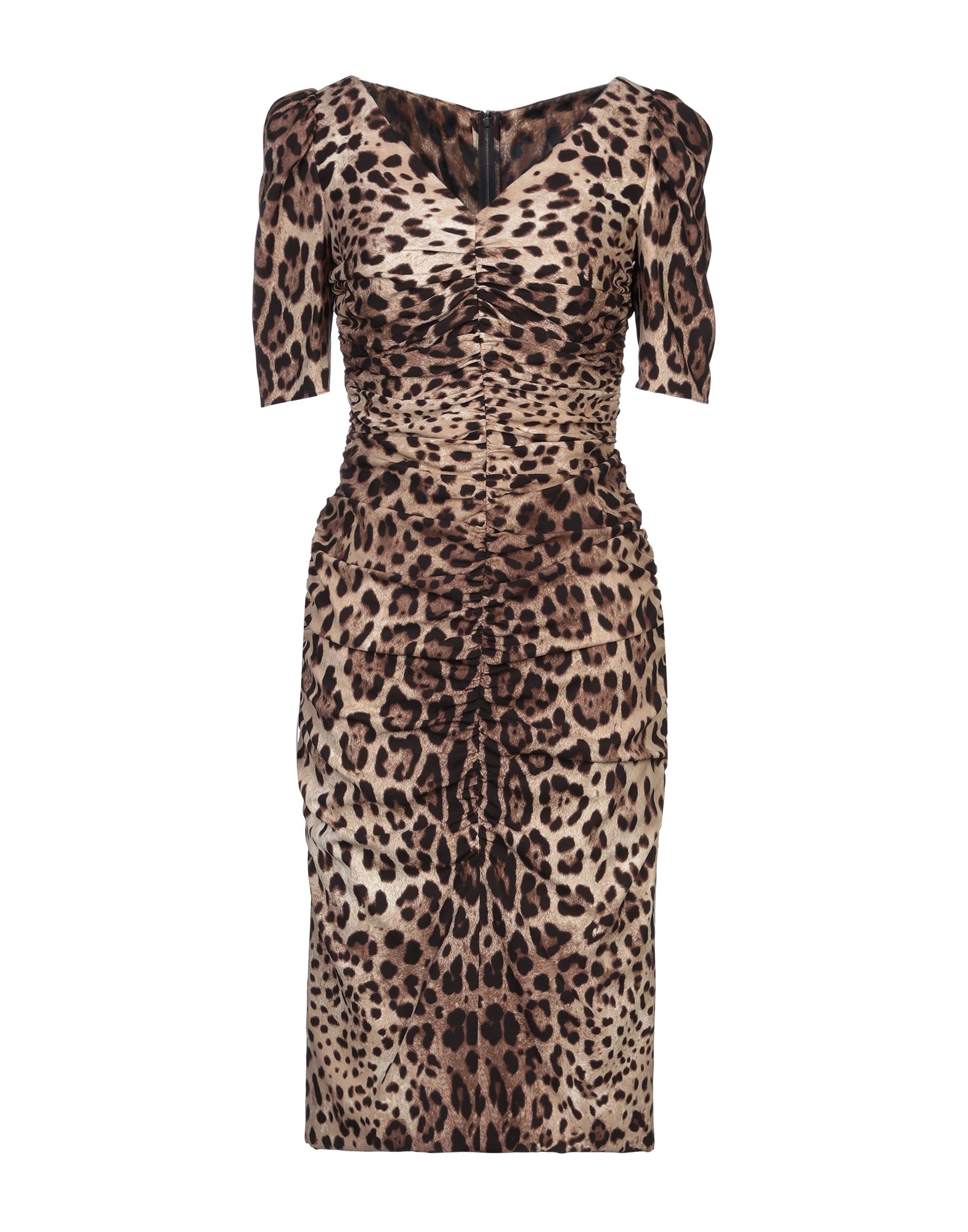 원피스 & 드레스, 크레이프, 레오파드 패턴, 드레이프, v 네크라인, 쇼트 슬리브, 안감있음, 지퍼 여밈, 포켓 없음, 스트레치.