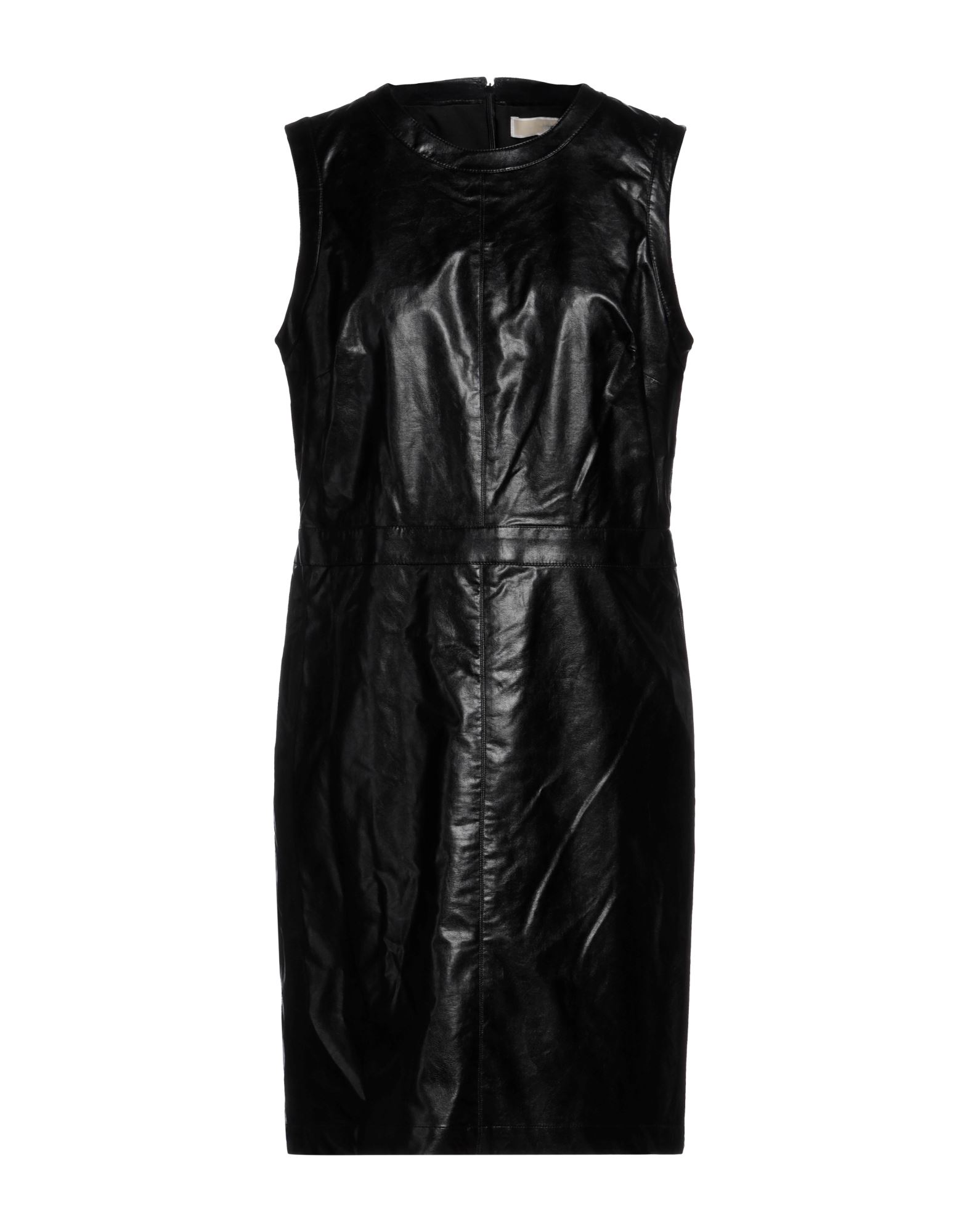 인조가죽, 장식 부착 없음, 솔리드 컬러, 크루넥, 슬리브리스, 안감있음, 지퍼 클로저, 훅&아이, 포켓 없음, 원피스 & 드레스.