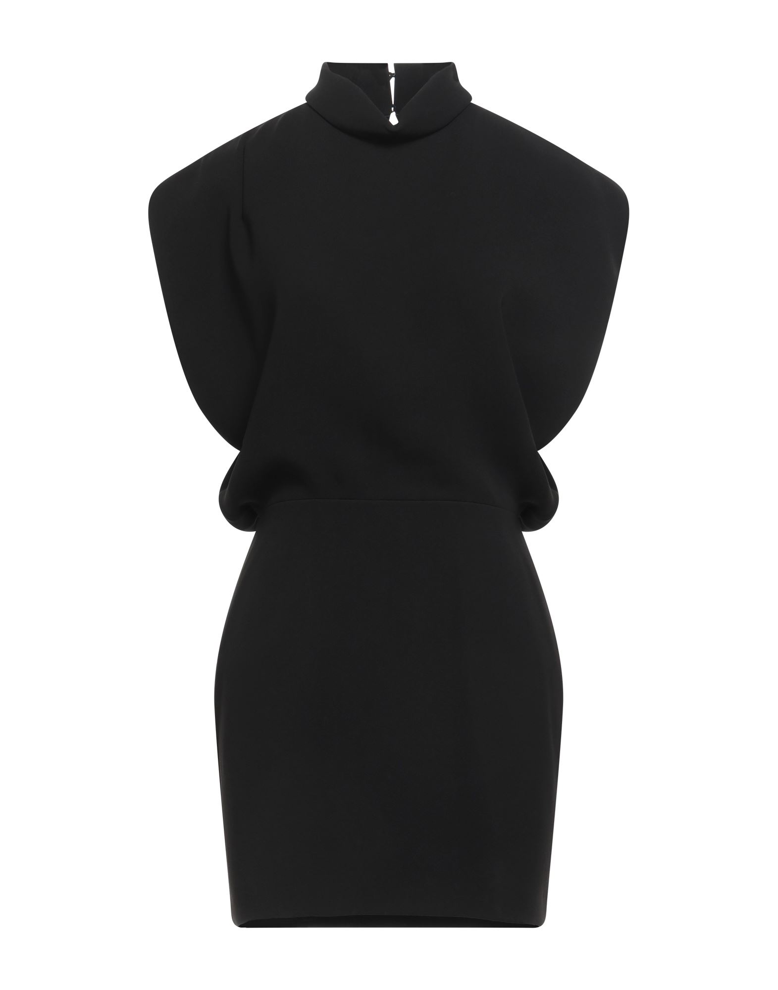 바디콘 드레스, 크레이프, 솔리드 컬러, 오픈 백, 터틀넥, 쇼트 슬리브, 지퍼 여밈, 포켓 없음, 손세탁 또는 드라이클리닝, 표백 금지, 건조기 사용불가.