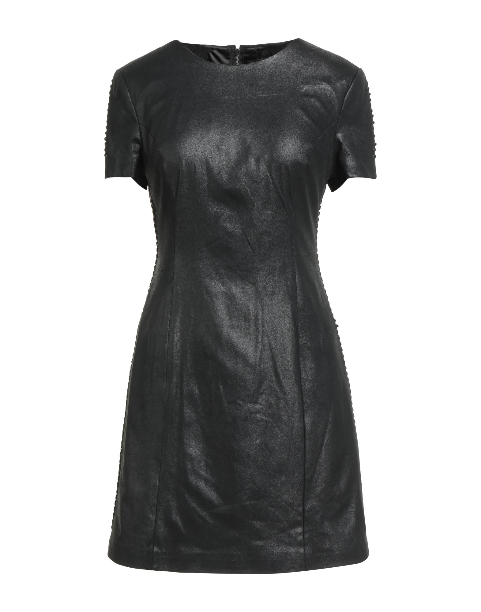 인조가죽, 프린지, 솔리드 컬러, 크루넥, 롱 슬리브, 안감없음, 지퍼 여밈, 포켓 없음, 플레어 드레스.