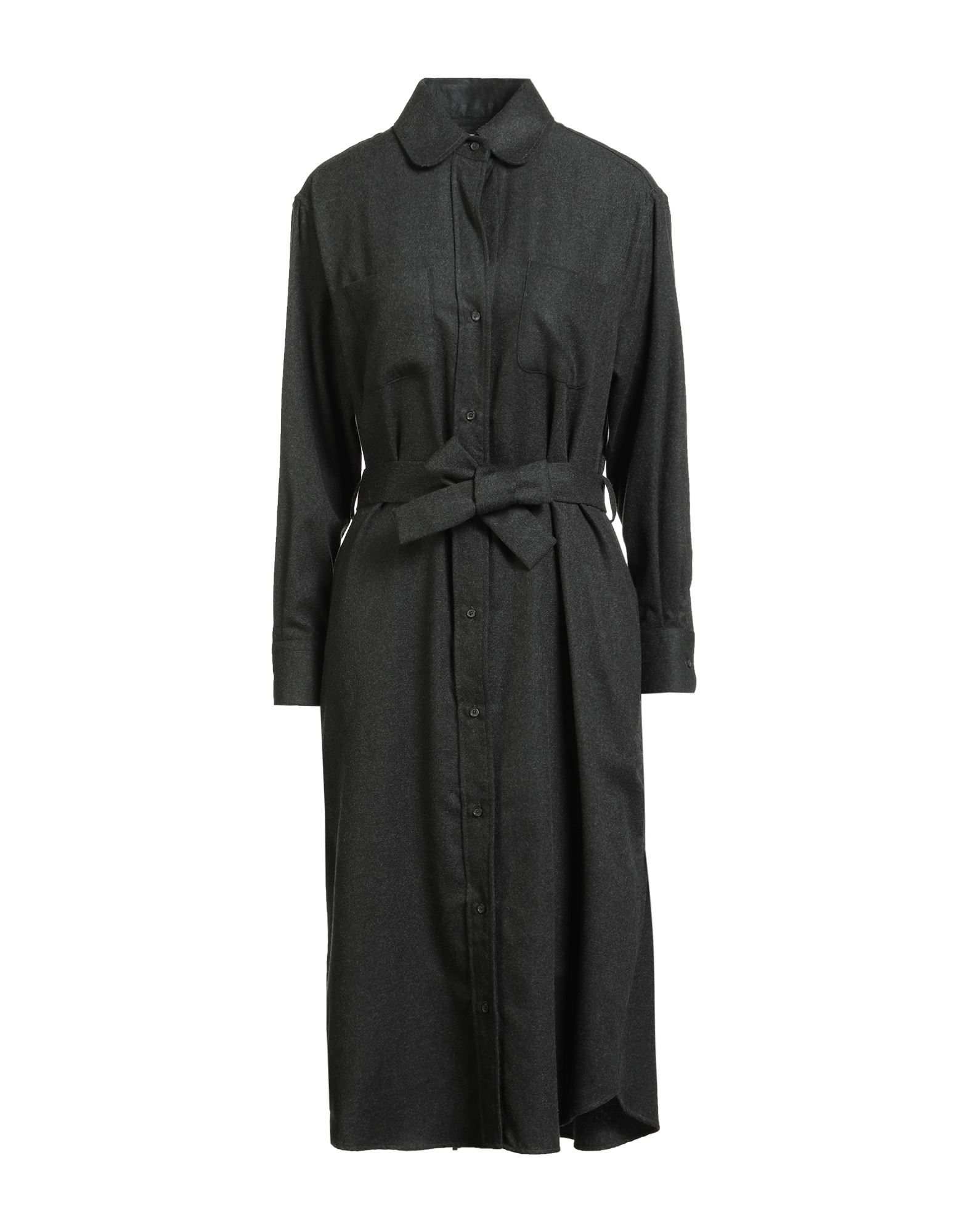 셔츠 드레스, 우븐, 장식 디테일 솔리드 컬러, 벨트, 스탠드 칼라, 롱 슬리브, 안감없음, 버튼 여밈, 멀티 포켓.