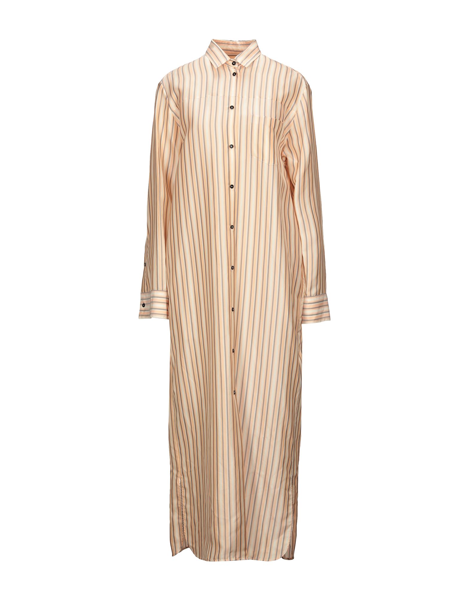 평직, 장식 부착 없음, 스트라이프, 멀티컬러 패턴, 버튼다운 칼라, 쇼트 슬리브, 안감없음, 버튼 여밈, 원피스 & 드레스.
