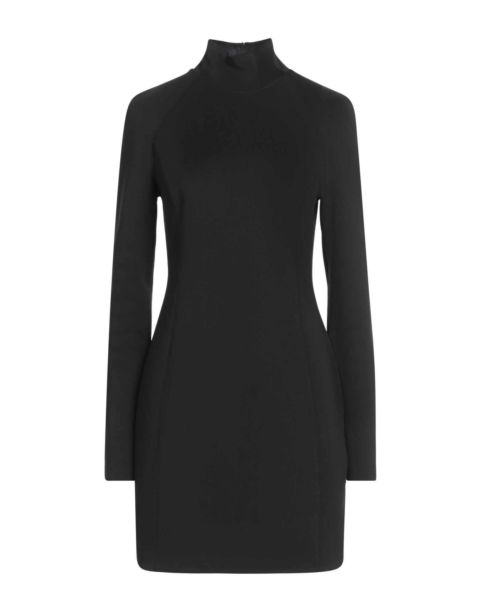 바디콘 드레스, 저지, 솔리드 컬러, 장식 부착 없음, 딥 네크라인, 롱 슬리브, 안감없음, 지퍼 여밈, 포켓 없음, 스트레치.