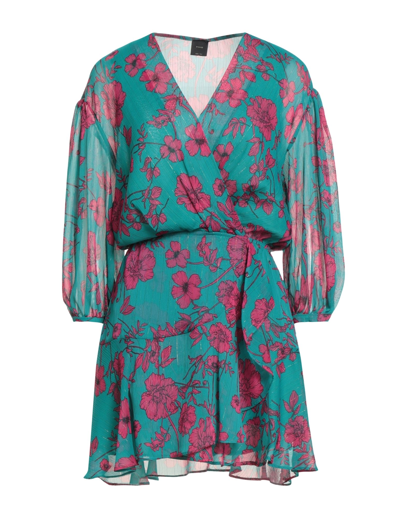 원피스 & 드레스, 조젯, 메탈릭 효과, 플로럴 모티브, 러플, 랩 스타일, 딥 네크라인, 3/4길이 슬리브, 개더 디테일 소매, 버튼 커프스, 부분적으로 안감 처리한 내부, 지퍼 여밈, 드라이클리닝, 표백 금지, 건조기 사용불가, 결혼식 하객 스타일로도 적합한 특별한 날에 어울리는 우아한 세레모니 룩.
