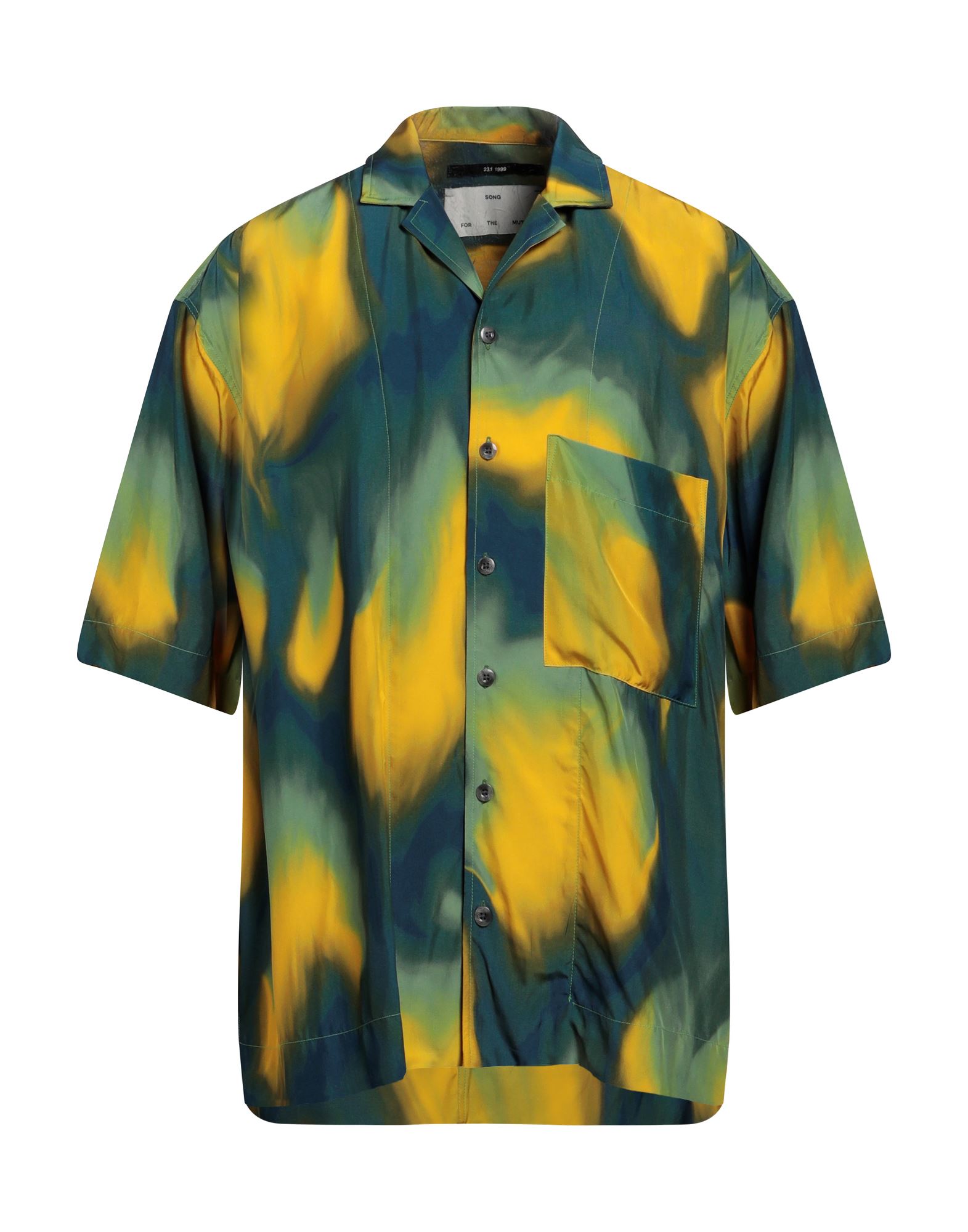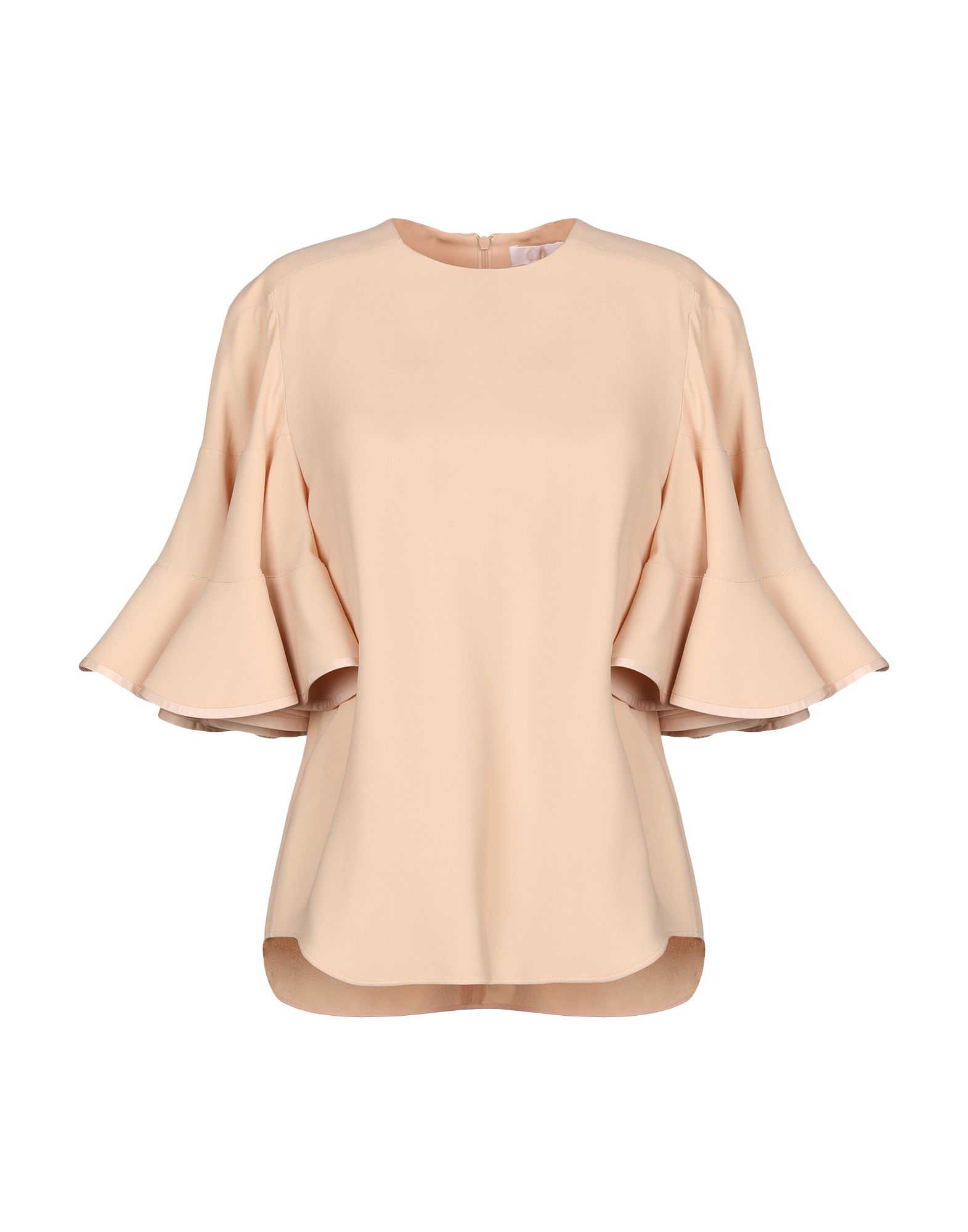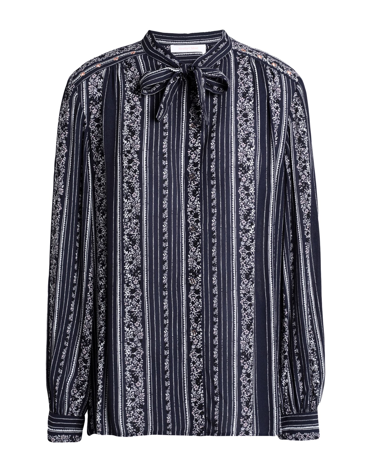 Oversized blouse in sheer chiffon with an all-over pattern. Band collar with gathers all around and a V-shaped opening at the front. Long balloon sleeves with narrow, buttoned cuffs and a gathered seam at the front of the waist for added volume.