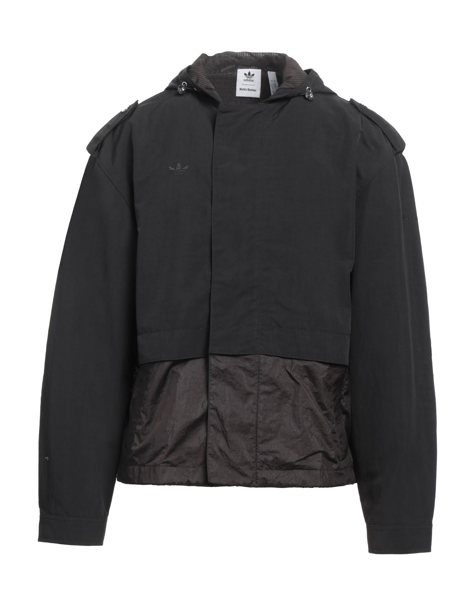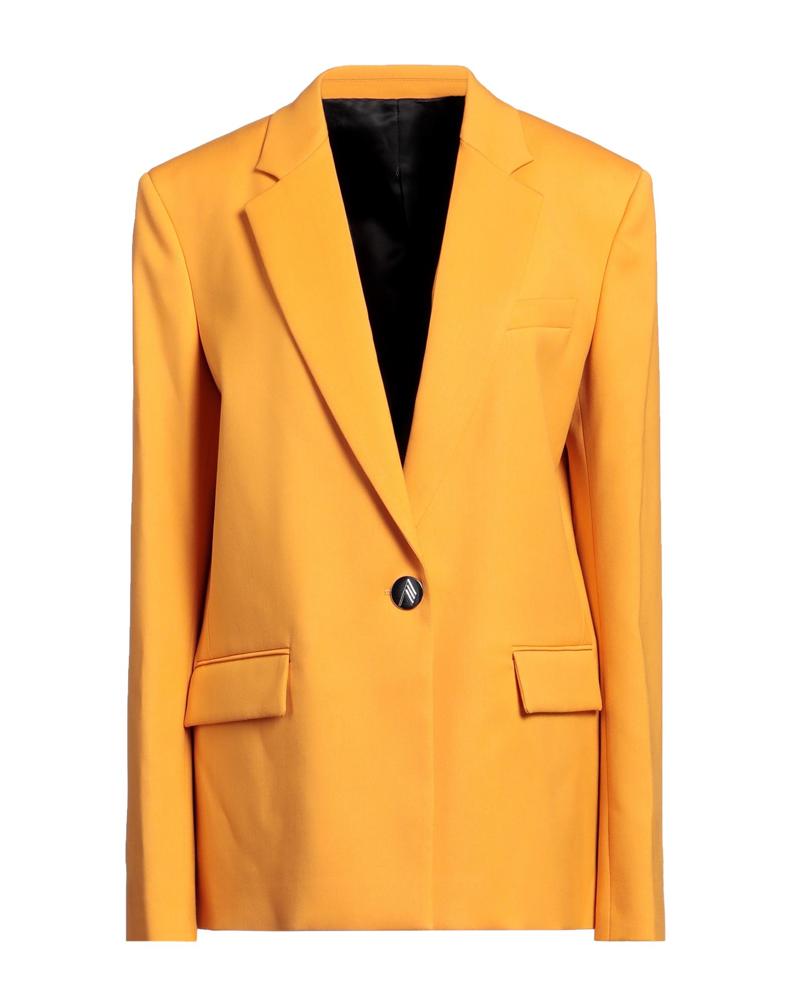 Long, collarless blazer in a felted weave with a coated detail around the neckline. Single-breasted front, jetted front pockets with a flap, shoulder pads and kissing buttons at the cuffs. Pleats at the back of the hem. Lined.