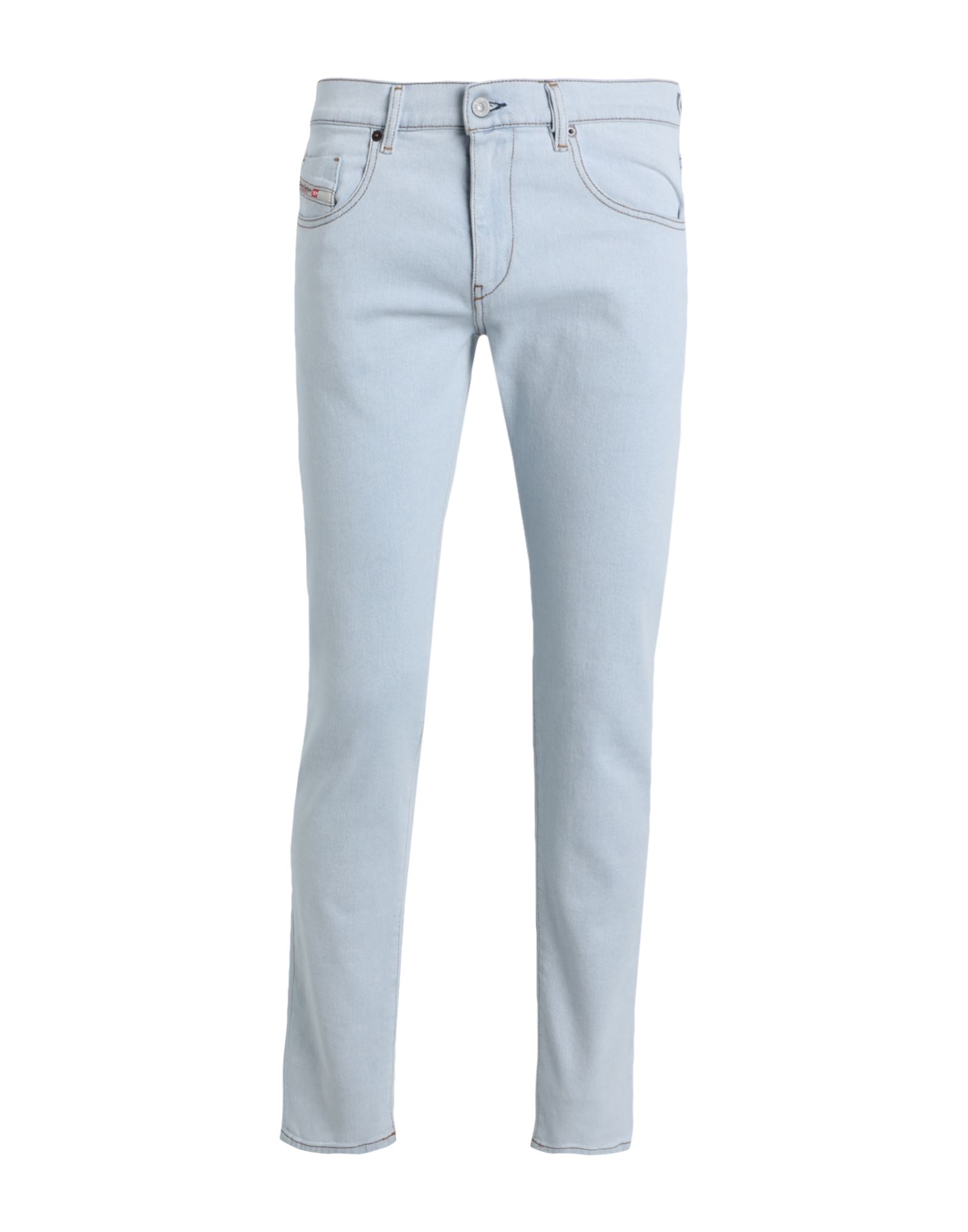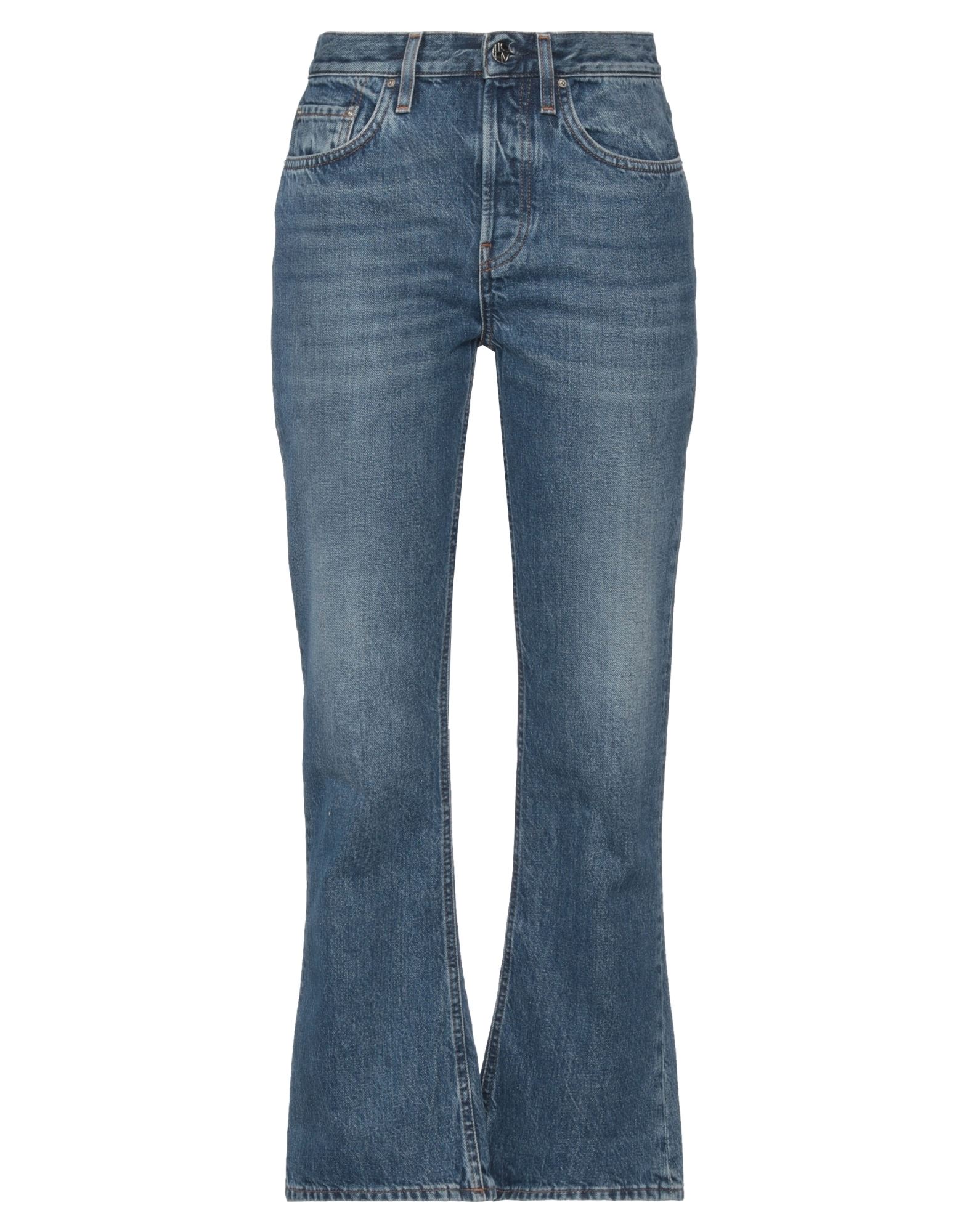 스트레치성 있는 5포켓 데님 진. 수퍼 하이웨이스트. 지퍼 플라이. 9부 길이의 세미 테이퍼드 레그.