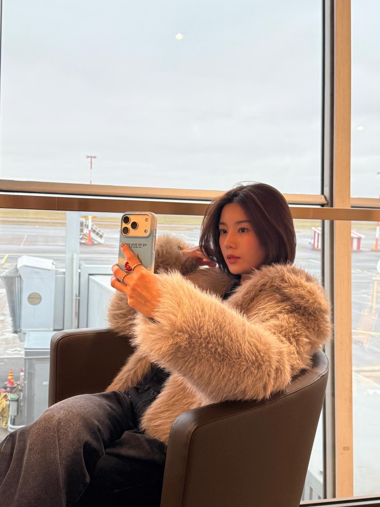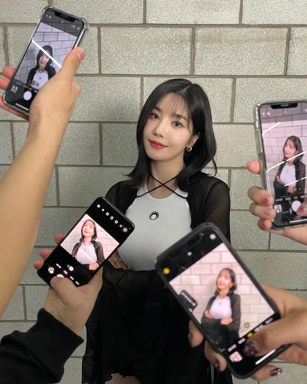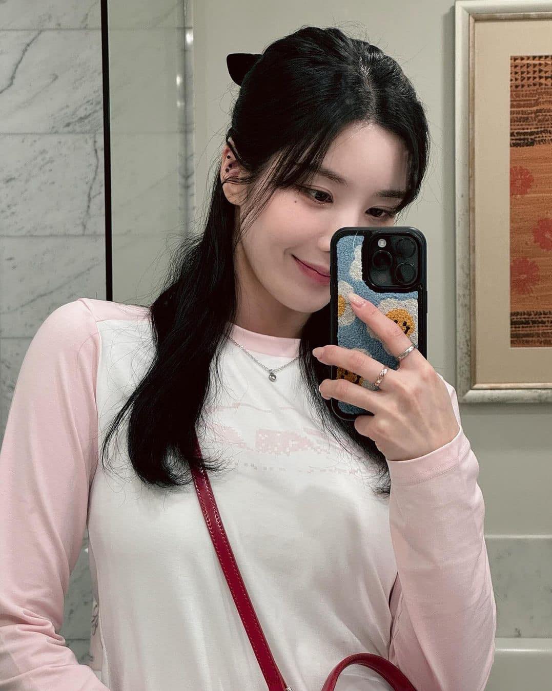 깔끔한 무지 롱 슬리브를 이너로 활용하면 겹쳐 입은 반팔 존재감이 더욱 또렷해집니다. 권은비처럼 니트 반팔과 매치하면 니트 특유의 텍스처가 더해져 부드럽고 클래식한 분위기를 연출할 수 있어, 간절기 데일리 스타일링으로 활용하기 좋습니다.