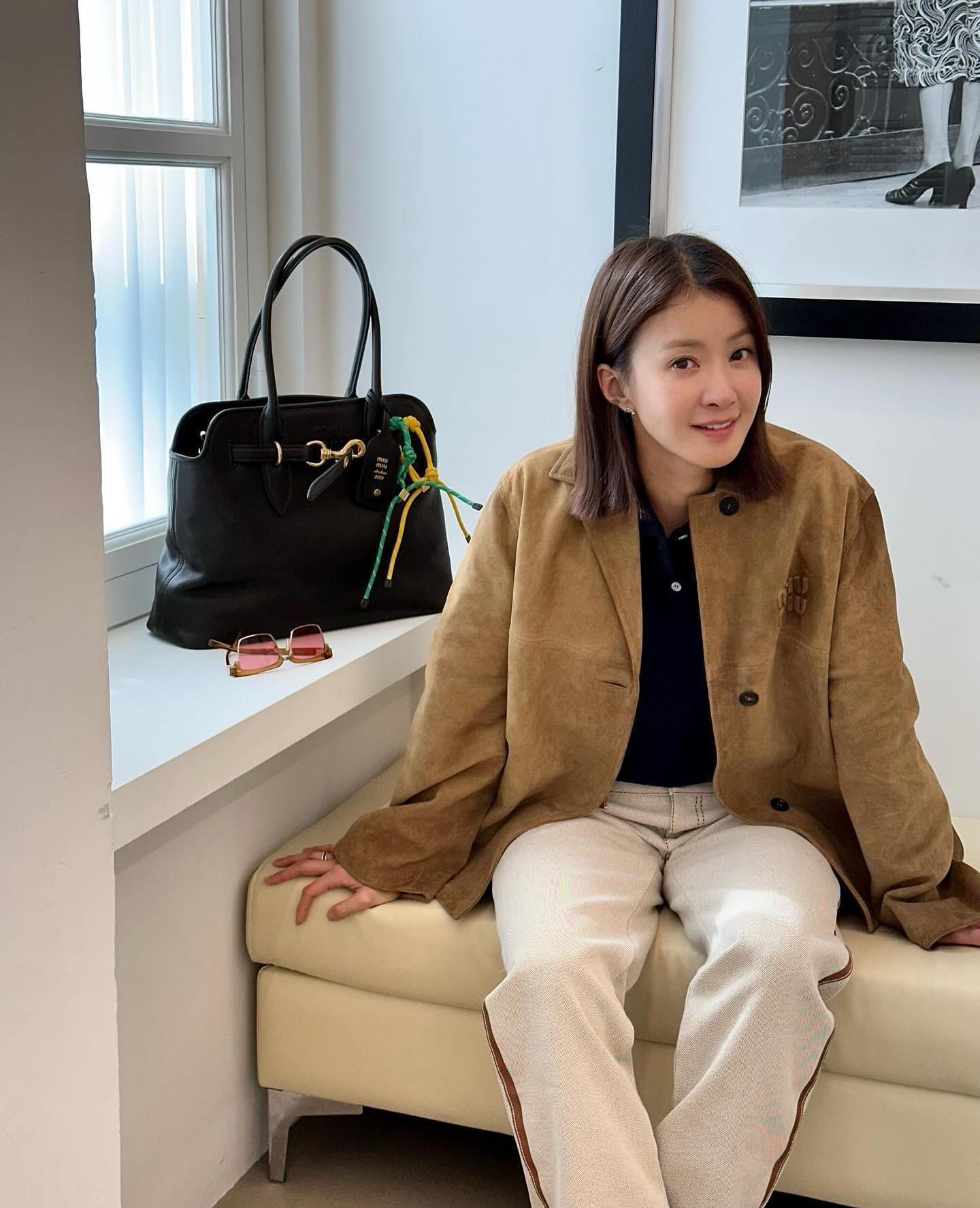 빈티지 슬립 드레스에서 영감을 받은 새틴과 레이스 디테일이 특징입니다. 제니는 루즈핏 데님 팬츠와 매치했으며, 편안하면서도 특별한 분위기를 연출했습니다.